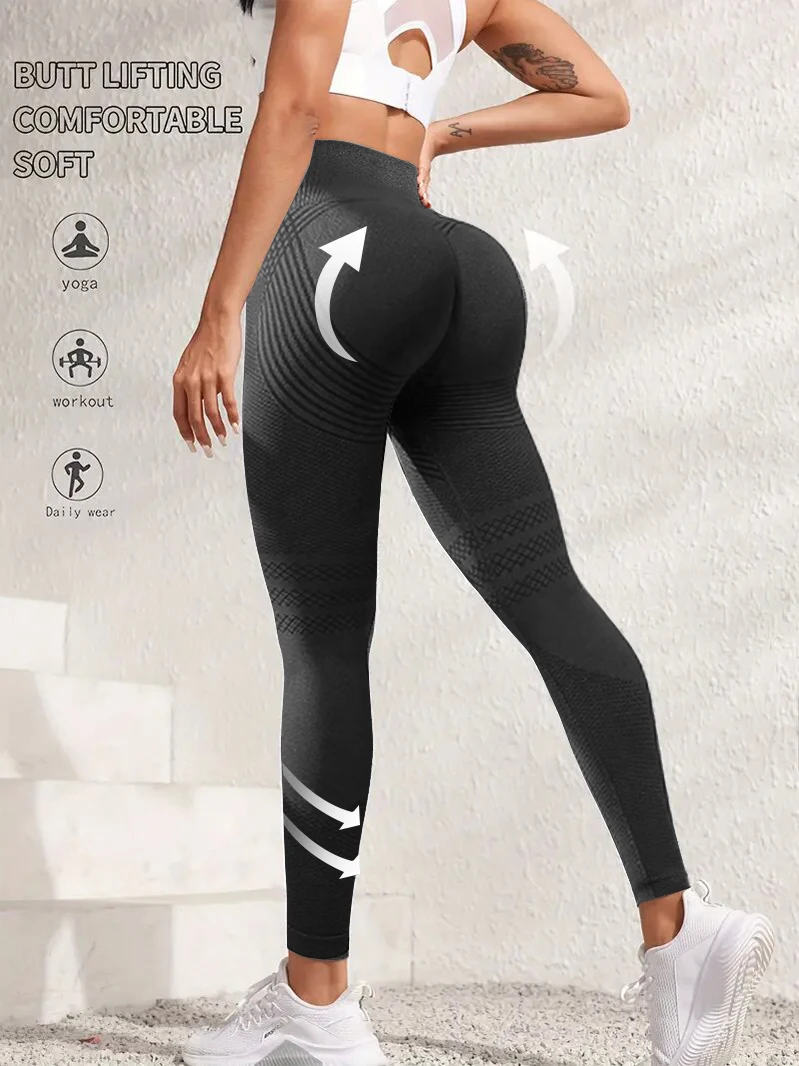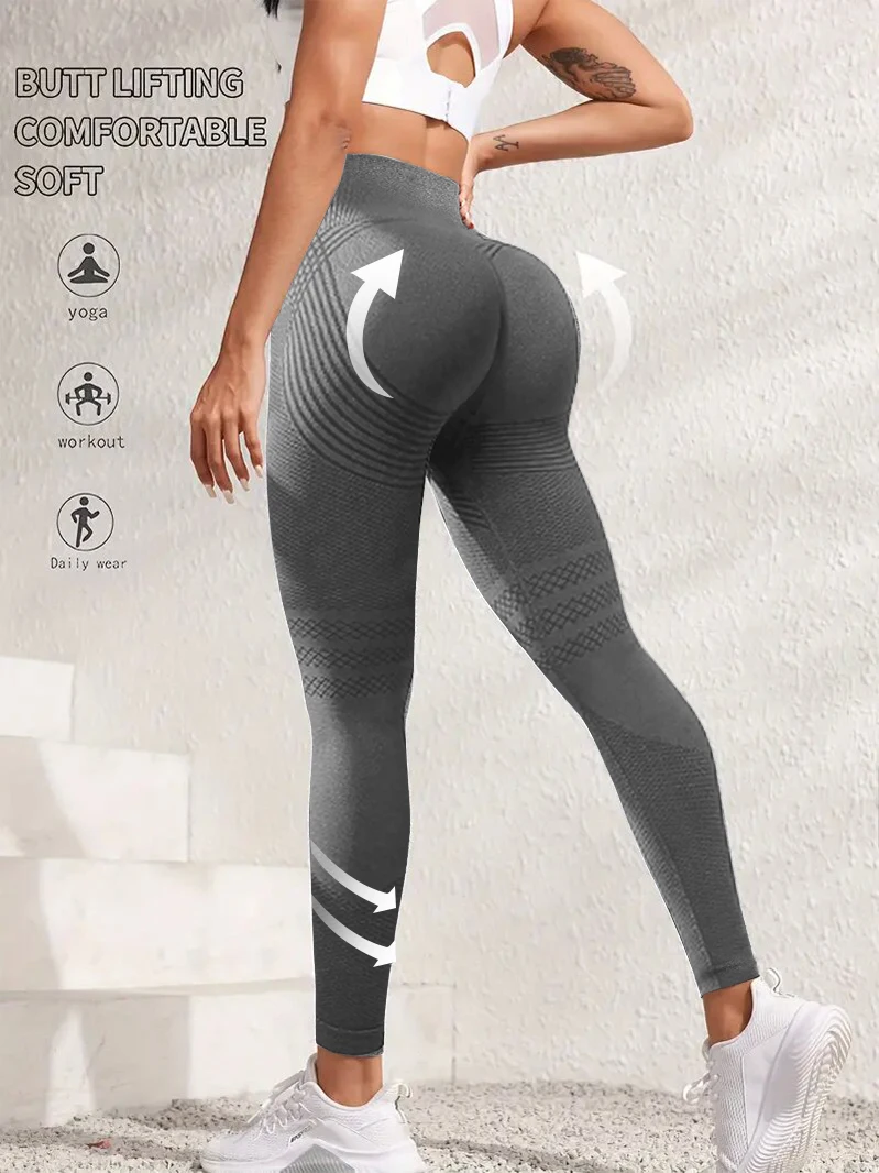 Premium 2-piece women’s legging set featuring push-up design with scrunch butt technology for enhanced curves and flattering silhouette. These seamless workout leggings combine sexy contouring lines with high-performance athletic functionality. Made with four-way stretch polyamide-elastane blend for ultimate flexibility and comfort. Features moisture-wicking and quick-dry properties with lightweight breathable fabric perfect for intense workouts.
