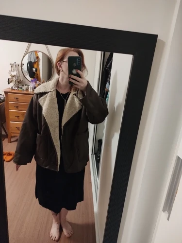 I am very happy with this jacket. The outer material has a very soft leather-like finish to the touch and looks durable. Inside, the synthetic lamb lining is thick, soft, and provides great warmth, ideal for cold climates. The buttons are well sewn and the pockets are wide, which adds comfort. The size fit me perfectly, so I recommend checking the guide carefully before buying. Fast shipping and well packaged. I highly recommend!
