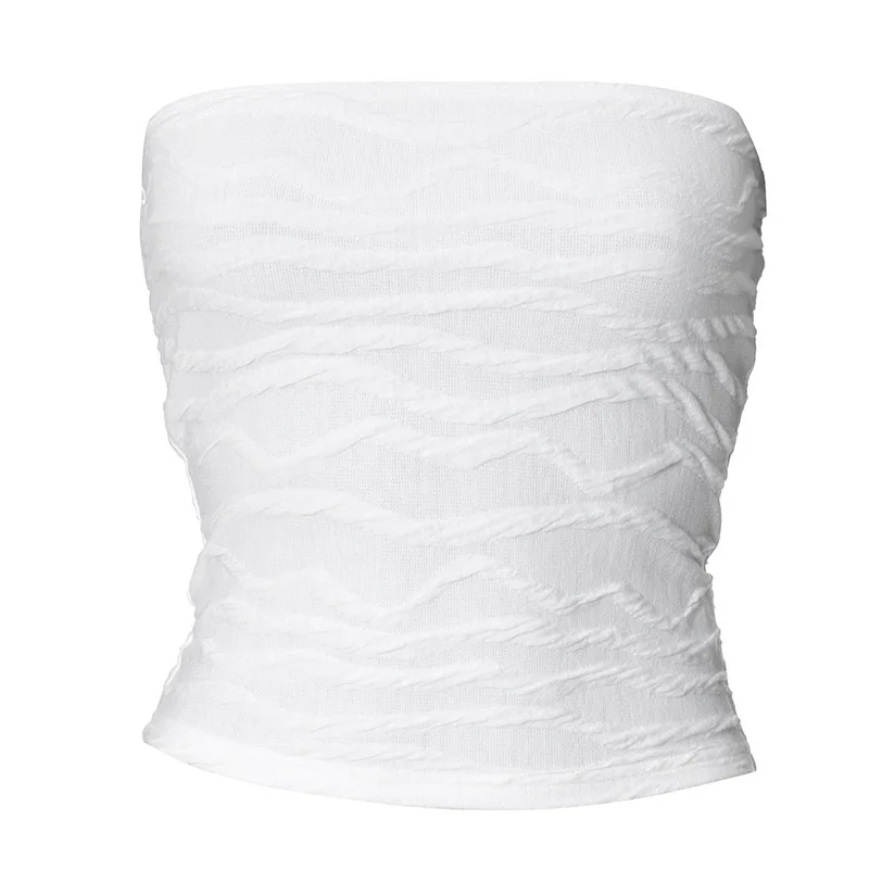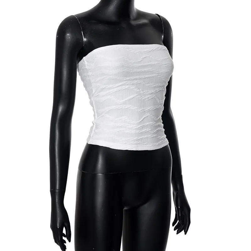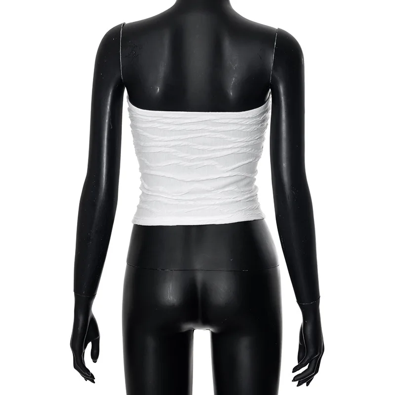 Step into summer 2024 with this stunning Y2K-inspired corset crop top that perfectly captures early 2000s streetwear vibes. The strapless tube design features strategic ruching details that create a flattering, form-fitting silhouette. With its backless construction and sleek white finish, this versatile piece transitions effortlessly from casual daywear to evening streetwear looks while maintaining that coveted Y2K aesthetic.