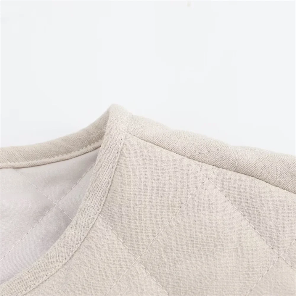 4 reviews for Women’s European American Diamond Grid Linen Blend Cotton Jacket