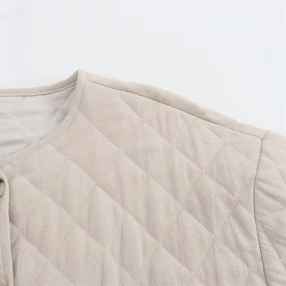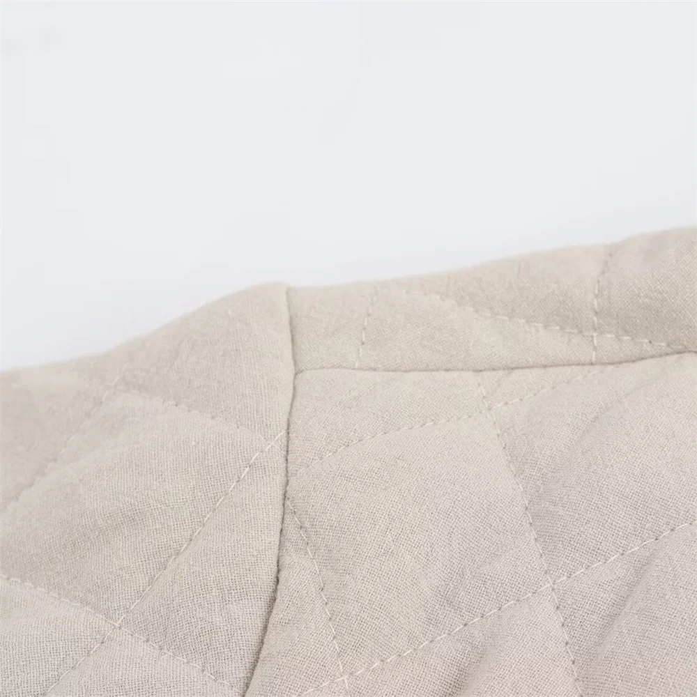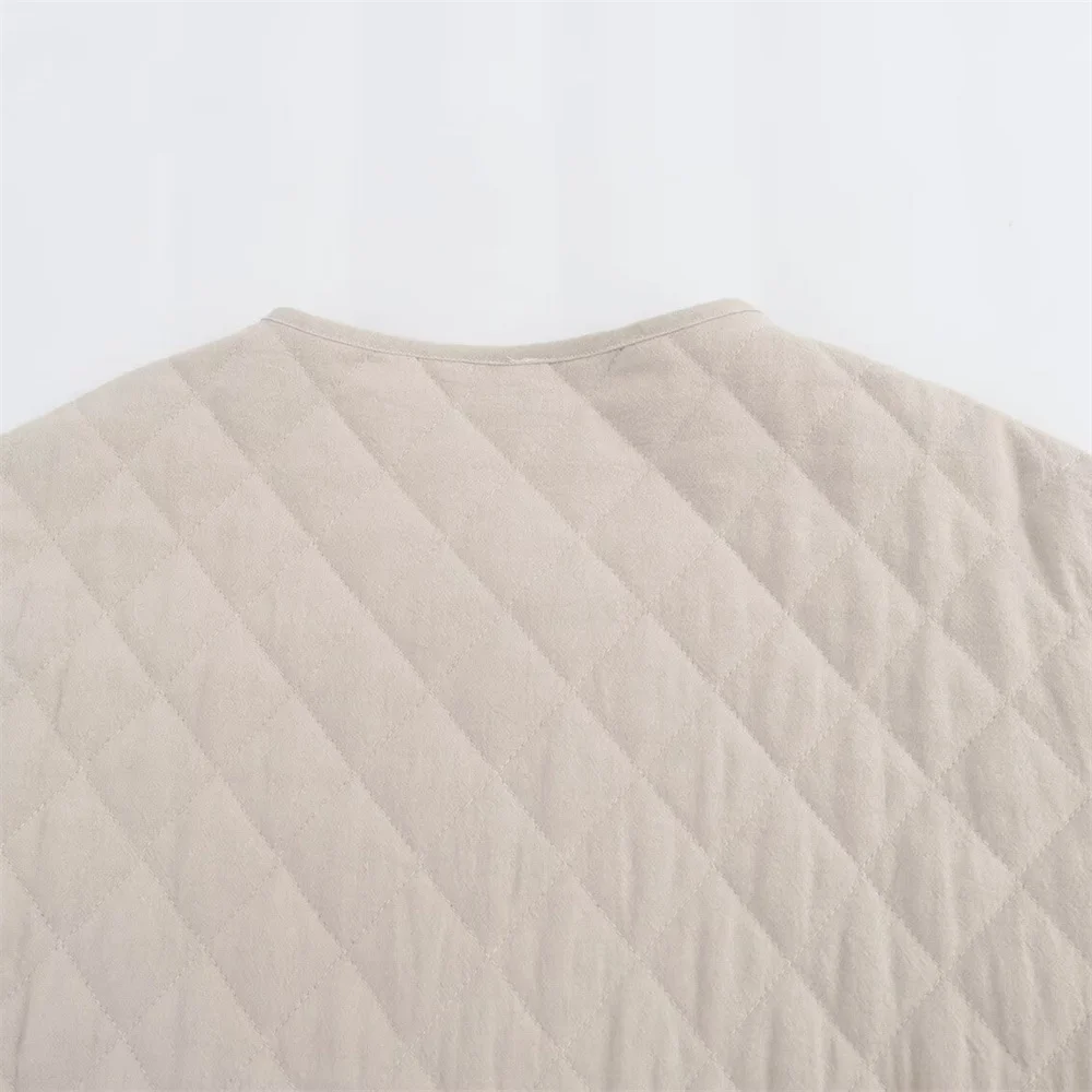 Elegant summer jacket combining European and American design aesthetics with sophisticated diamond grid pattern detailing. Crafted from a luxurious linen blended cotton feel with chiffon-inspired texture for breathable comfort during warmer months. This versatile casual coat features classic single-breasted styling with decorative button accents, perfect for middle-aged women seeking refined summer layering. The full opening design and regular fit ensure effortless wearing while maintaining an elevated, polished appearance suitable for various occasions.