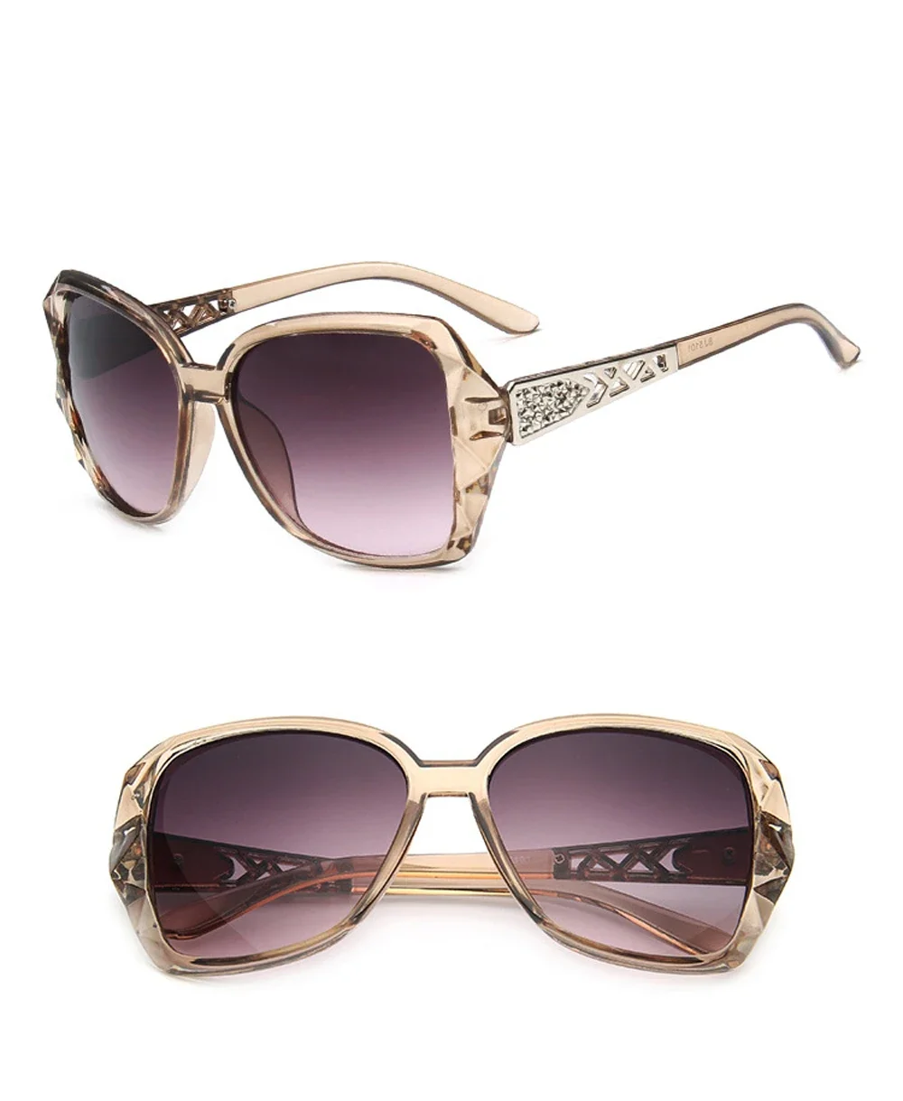 Perfect for fashion-forward women seeking luxury eyewear aesthetics. The oversized square design flatters various face shapes elegantly. Purple mirror lenses create striking visual impact in outdoor settings.