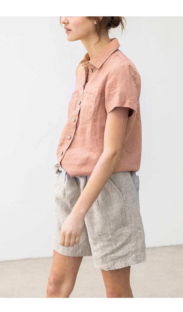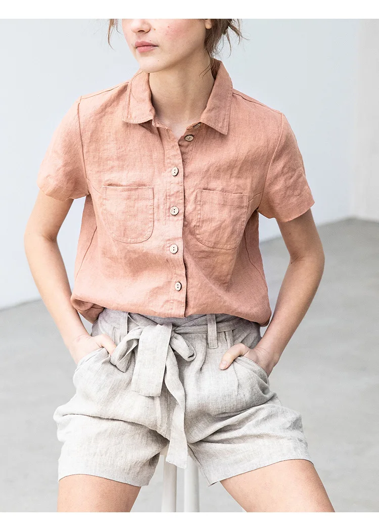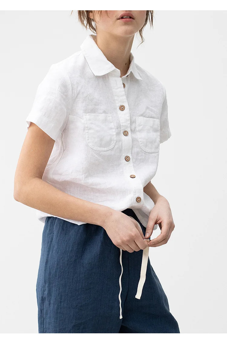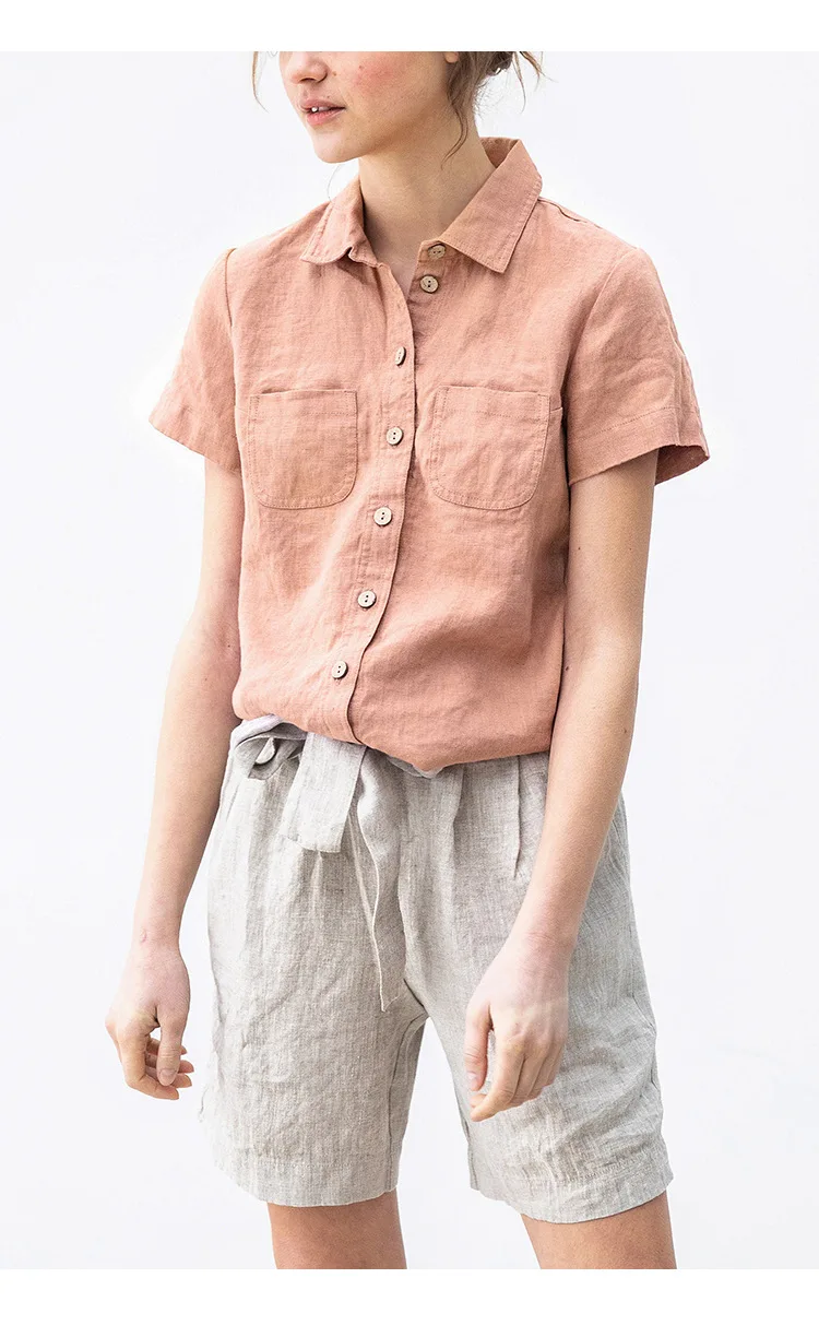 Premium 100% linen casual shirt featuring classic turn-down collar and button-up design. Made from breathable woven linen fabric with regular fit silhouette. Perfect versatile piece for office ladies and streetwear styling that combines natural comfort with professional elegance for summer wear.