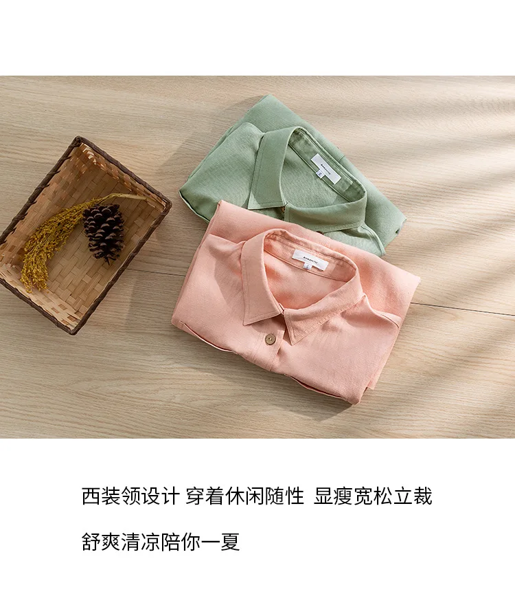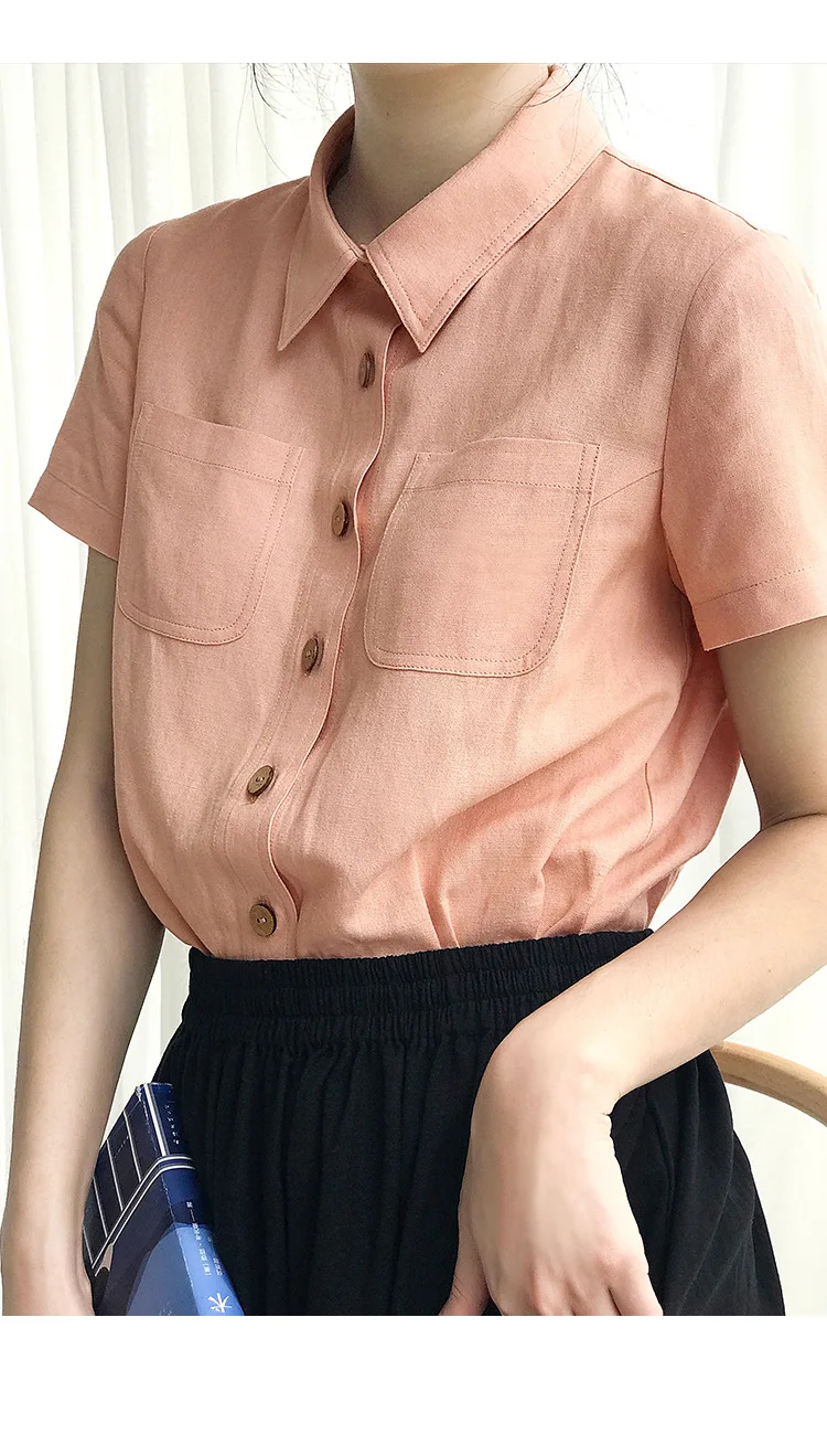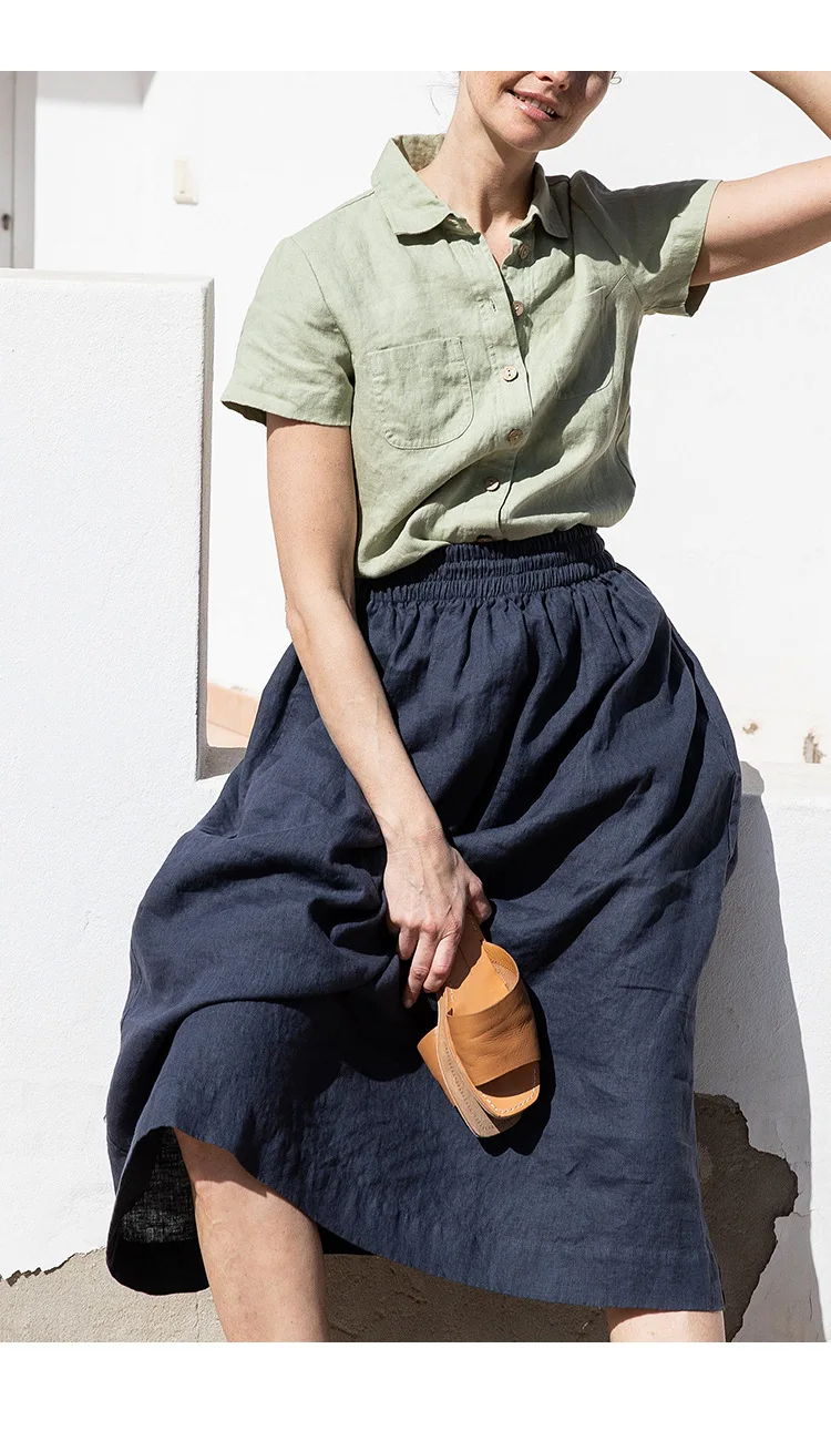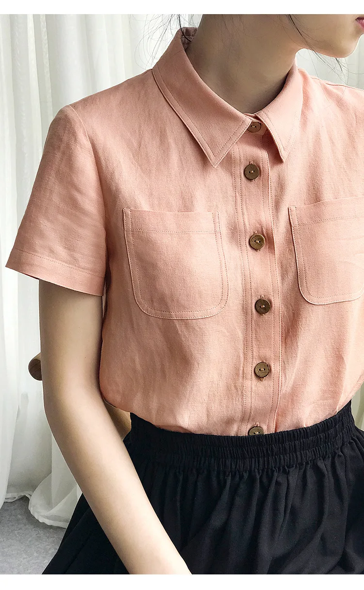 Premium 100% linen casual shirt featuring classic turn-down collar and button-up design. Made from breathable woven linen fabric with regular fit silhouette. Perfect versatile piece for office ladies and streetwear styling that combines natural comfort with professional elegance for summer wear.