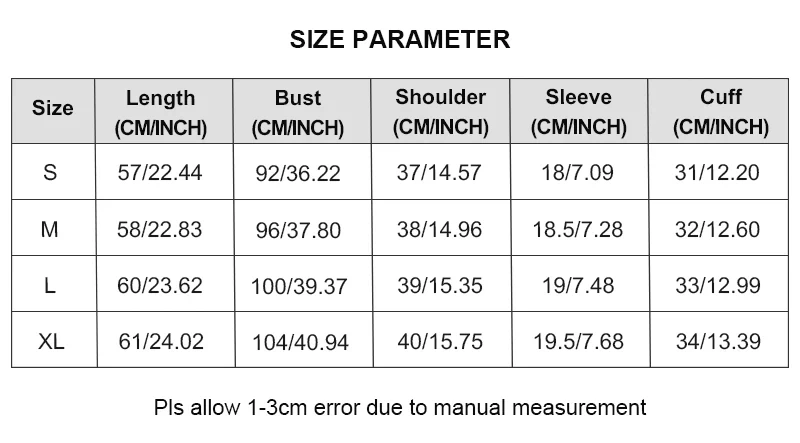 • Sleeve Length: Full-length sleeves (despite “short sleeve” in title)