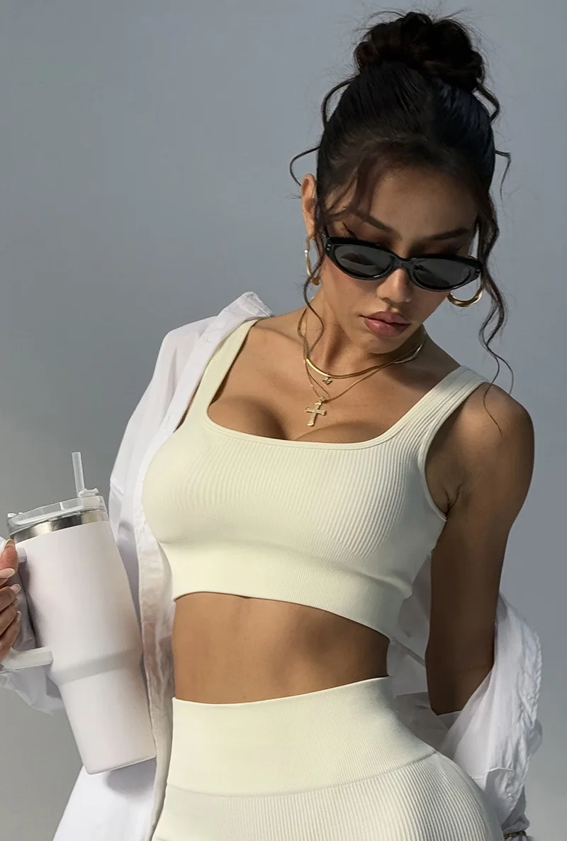Premium yoga crop top sports bra from Cloud Hide featuring push-up technology and wireless comfort with built-in padding. This fast-drying athletic vest combines breathable, elastic fabric with professional shockproof support for running, fitness, and yoga activities. The slim-fit design offers skin-friendly comfort while maintaining a fashionable silhouette. Perfect for active women seeking both style and performance across cup sizes A through F.