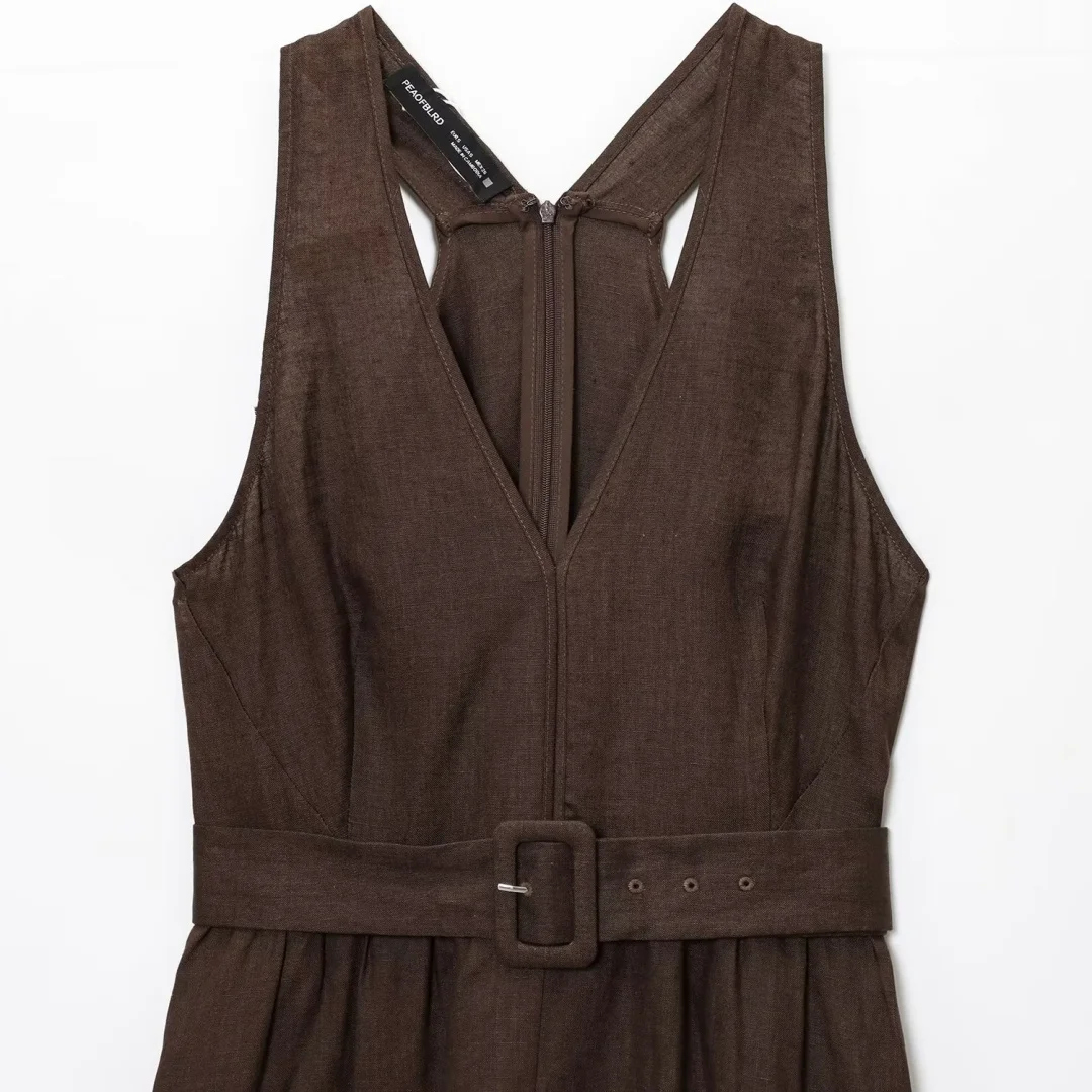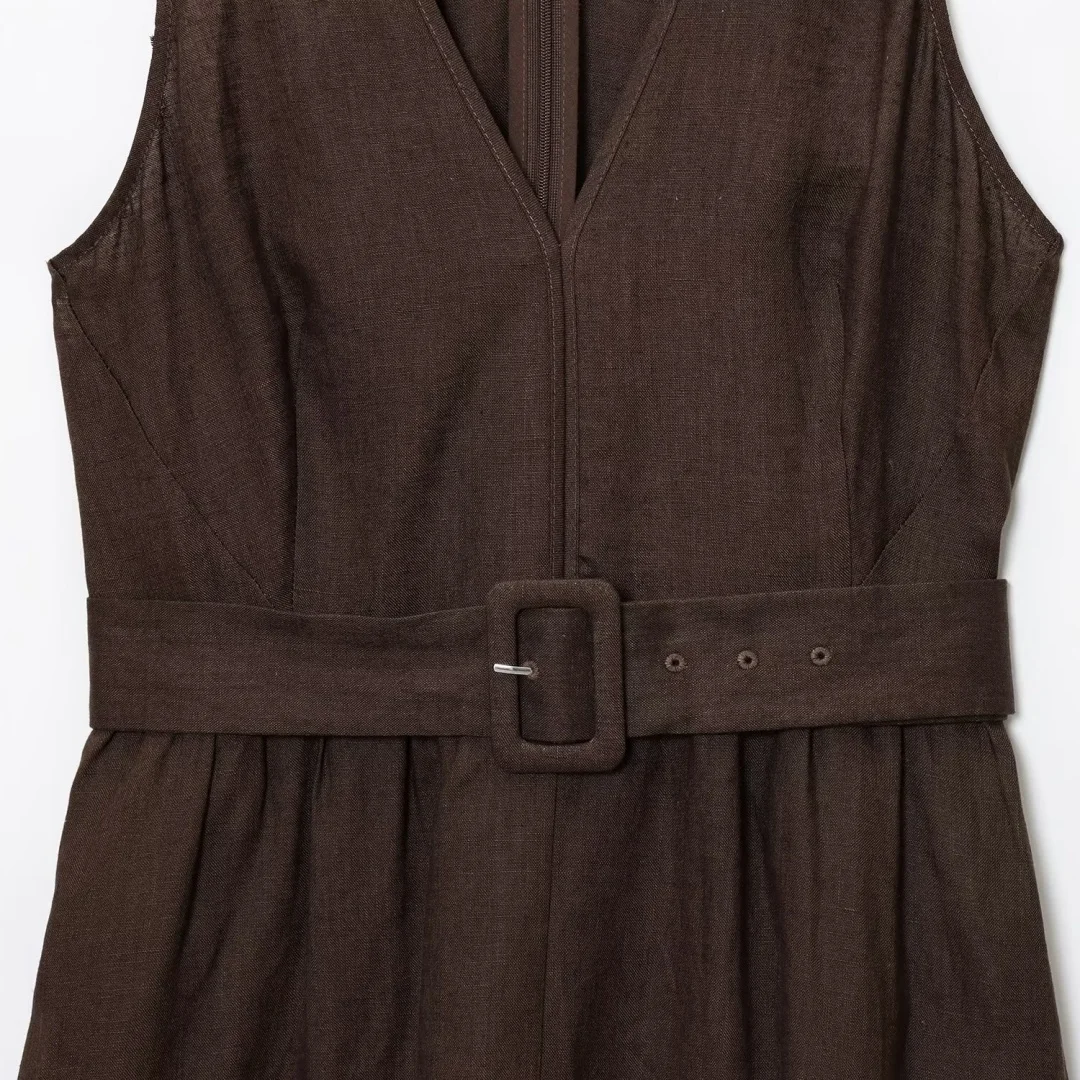 1 review for Elegant Long Vest Dress with Belt – French Chic A-Line Midi