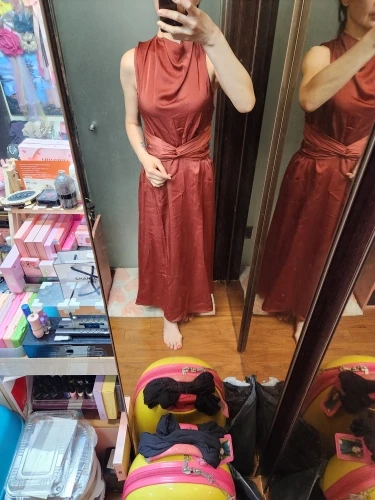The luxurious silk texture finish gives this polyester dress a premium feel and sophisticated drape that moves beautifully with every step. The sleeveless design with natural waistline creates a flattering silhouette that’s perfect for middle-aged women who want to embrace modern, confident style.