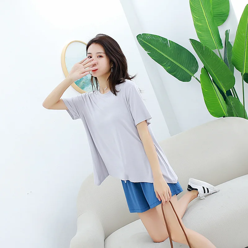 Discover ultimate summer comfort with this modal casual pajama set. The breathable short-sleeve top and matching shorts create perfect combination for warm weather relaxation.