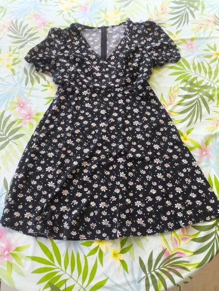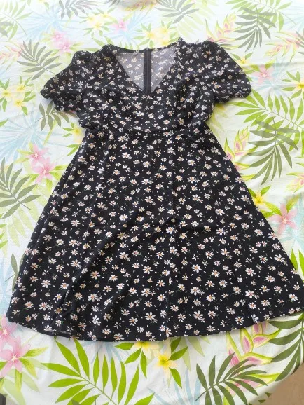 Women's Floral Print V-Neck Puff Sleeve Dress photo review