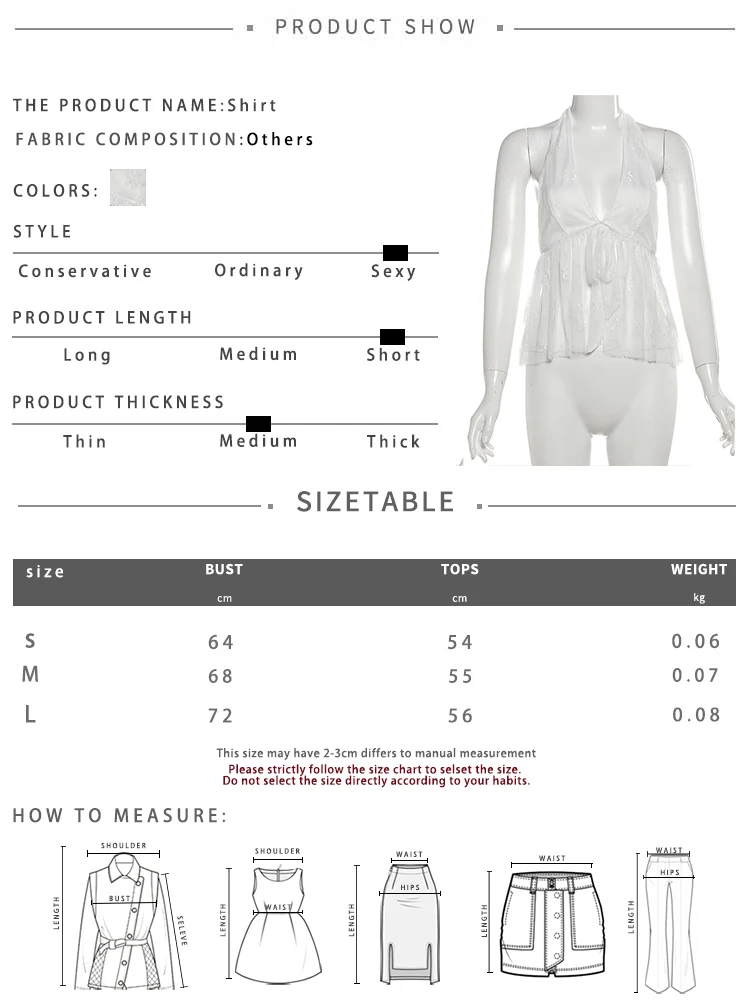 - Neckline: Low-cut Halter style