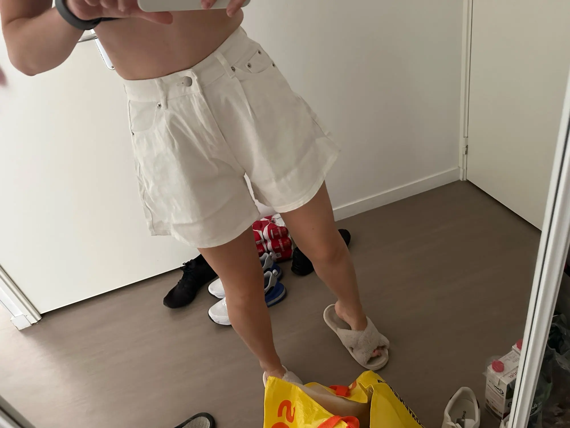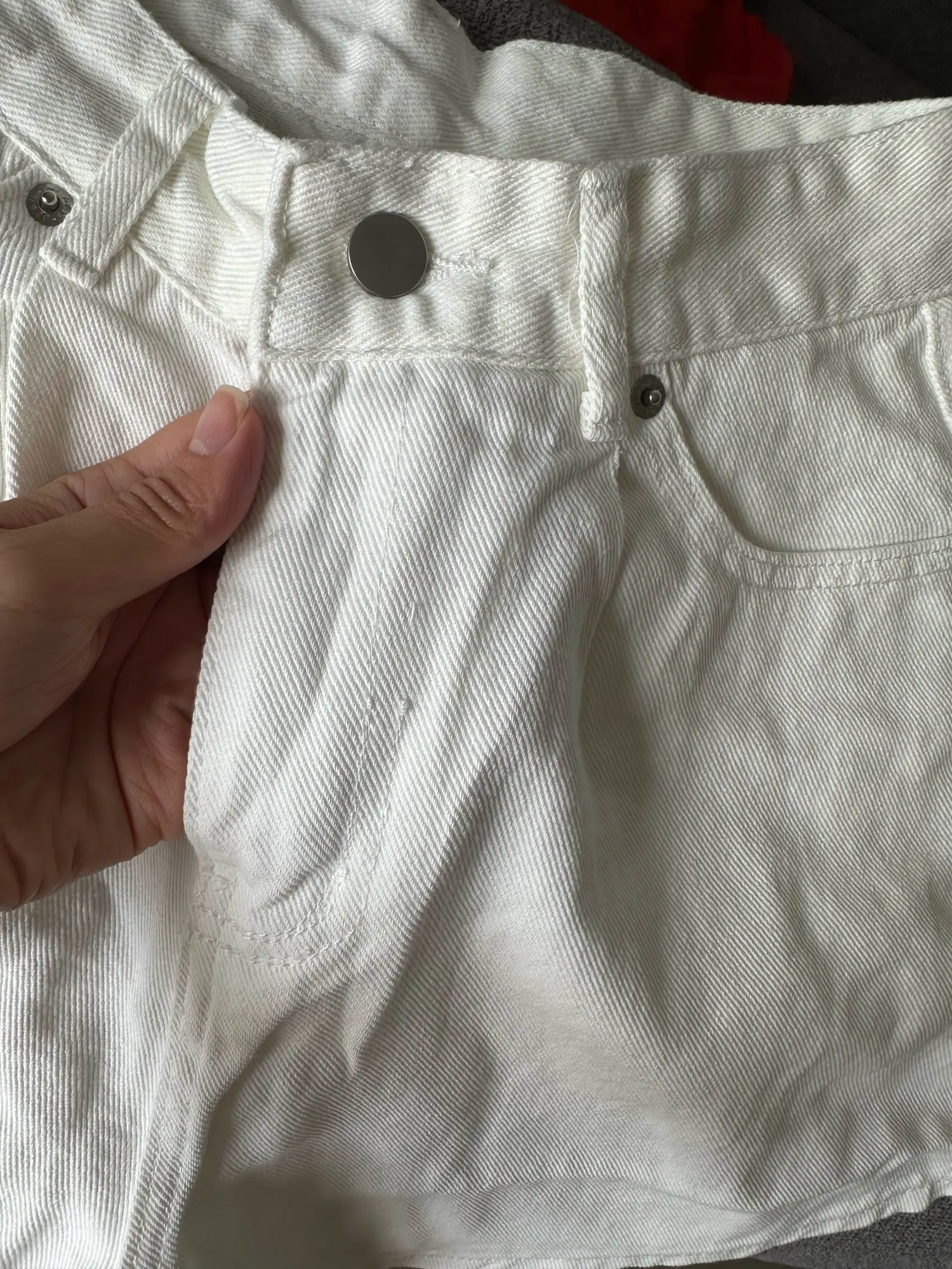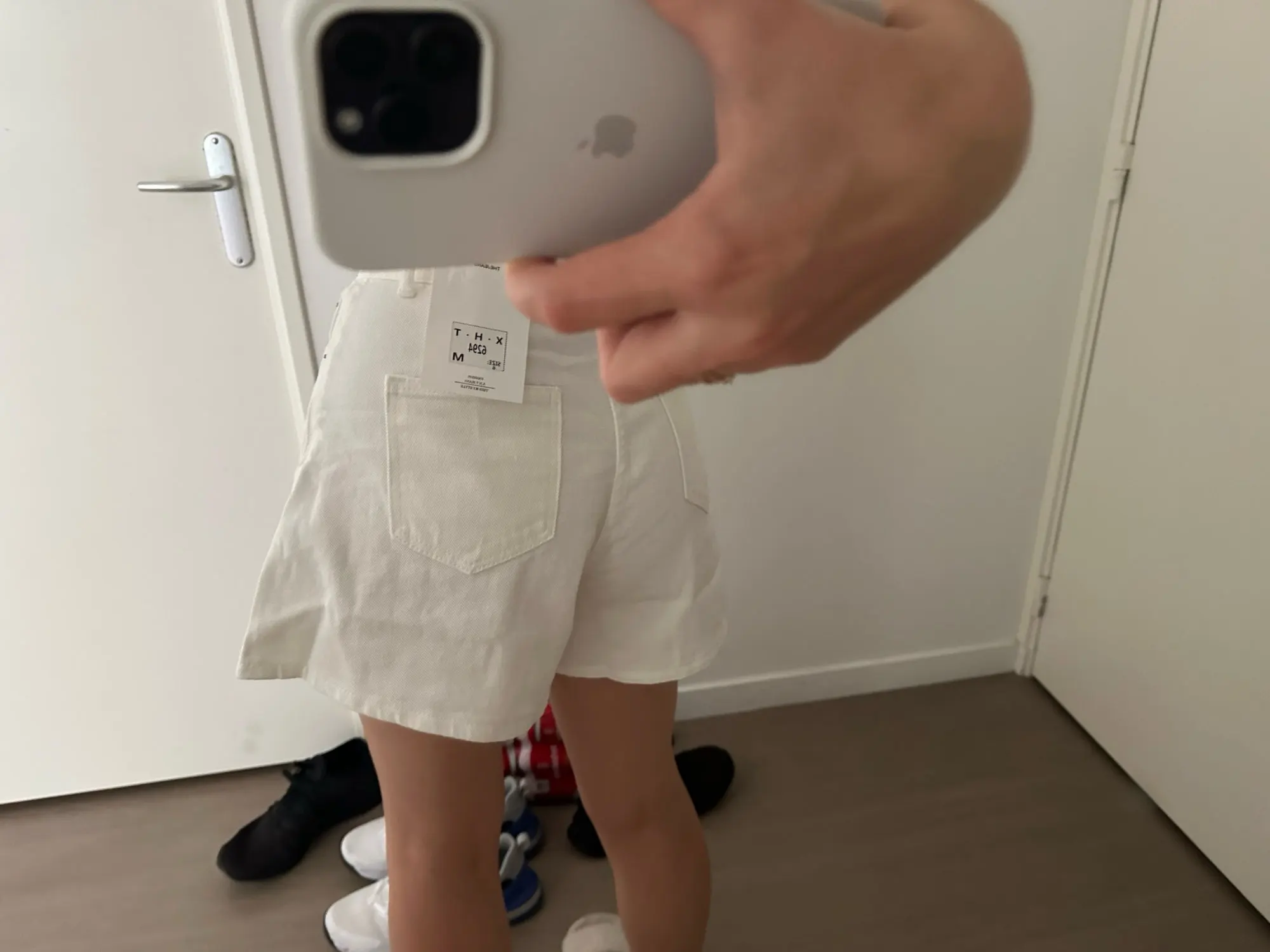 Vintage-inspired white denim shorts with a high waist, A-line silhouette, and loose wide-leg fit. Washed finish and classic button fly with functional pockets make them perfect for casual spring–summer outfits.