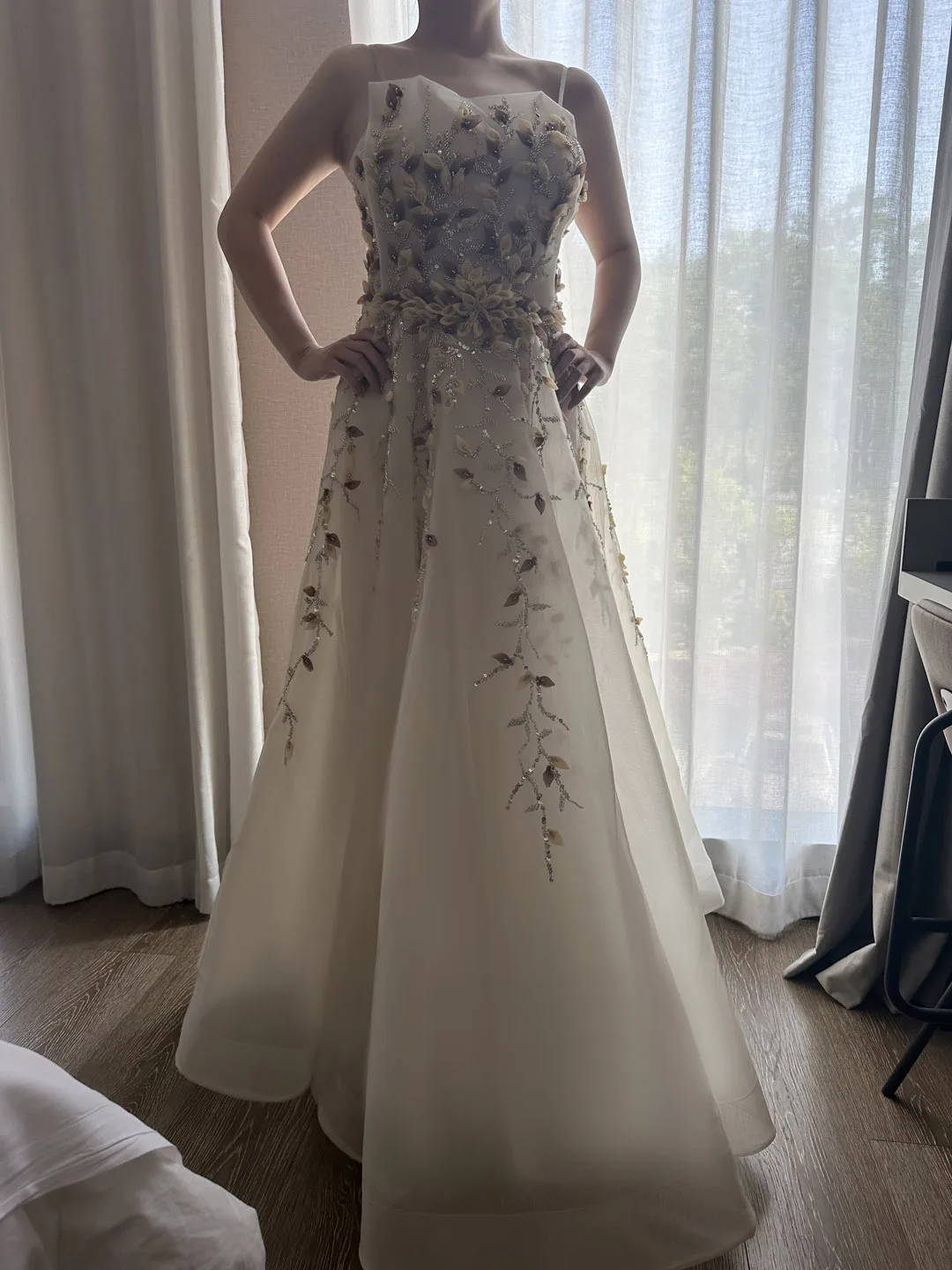 I received the dress exactly as shown, and it was of high quality. It arrived quickly, thanks to the excellent and helpful customer service.
