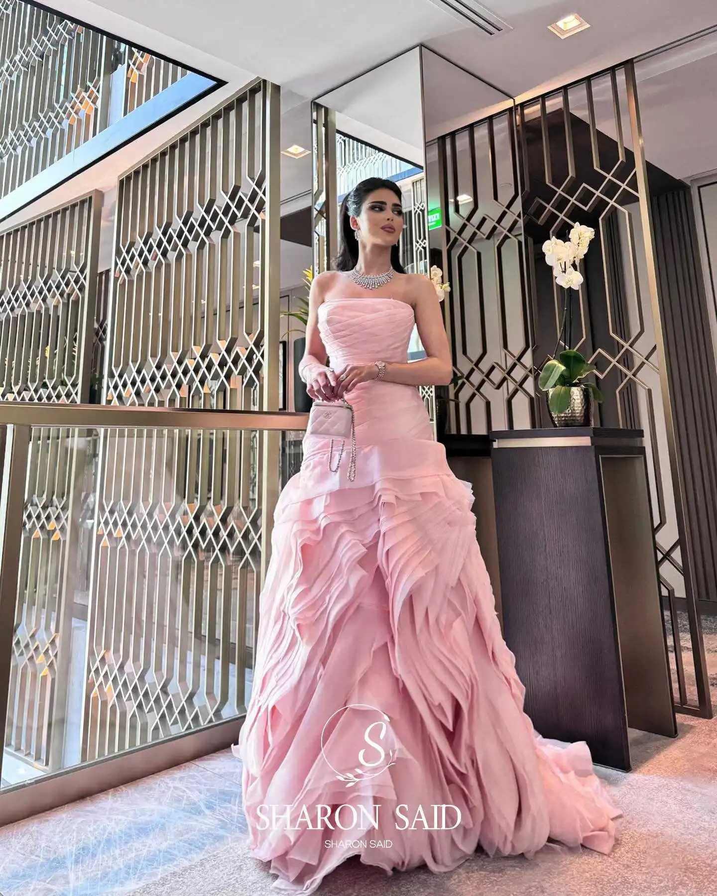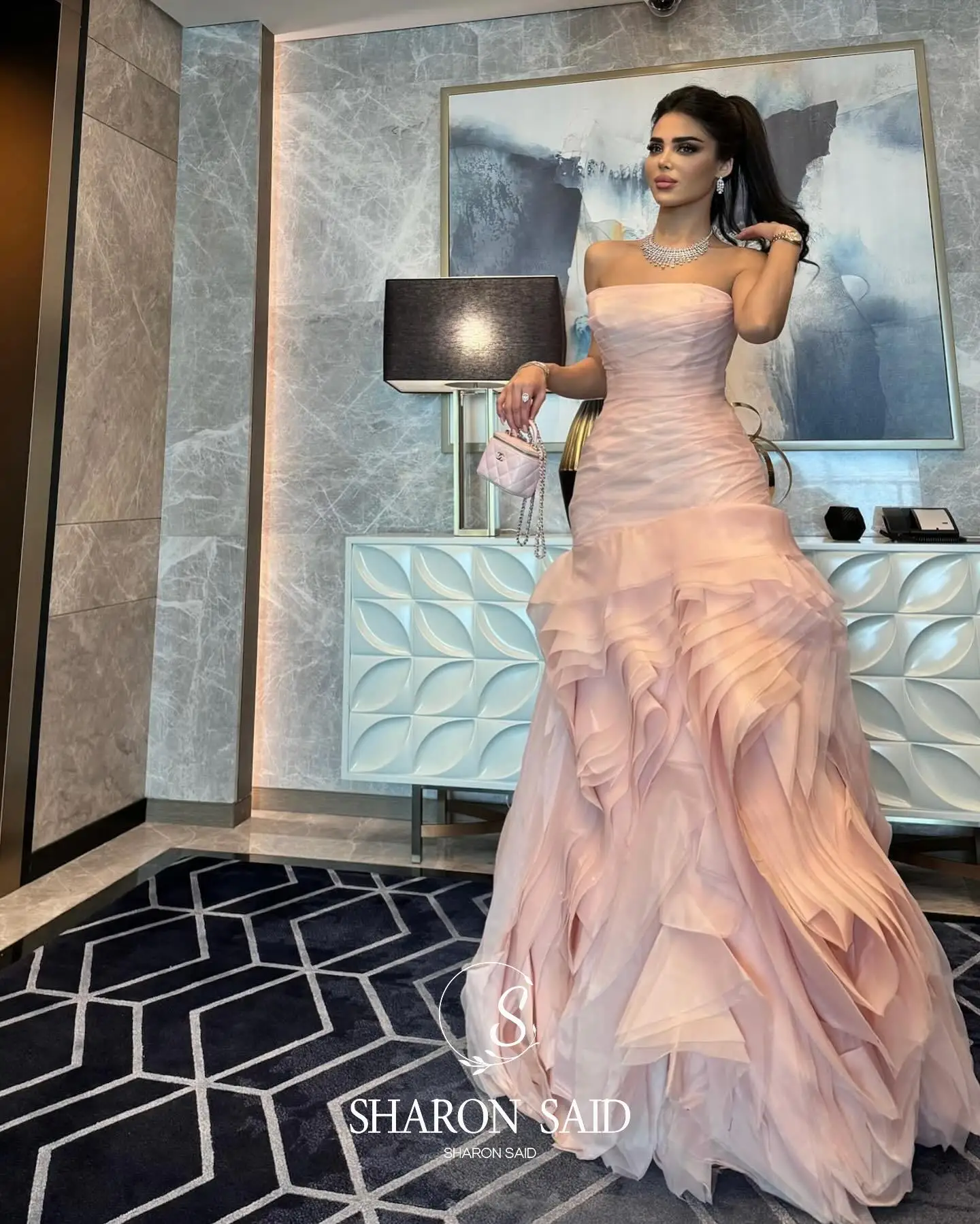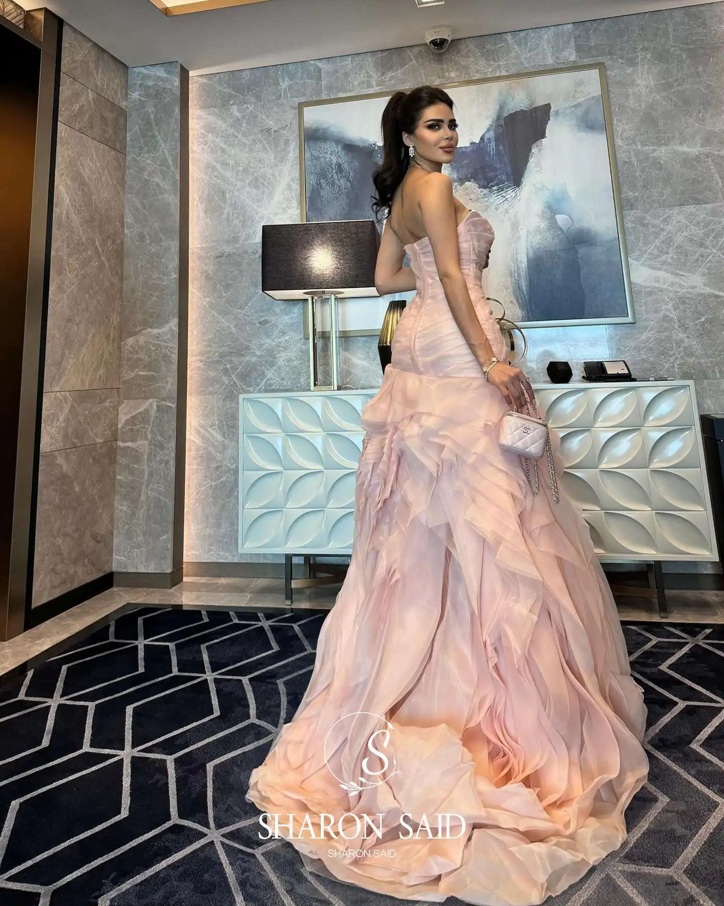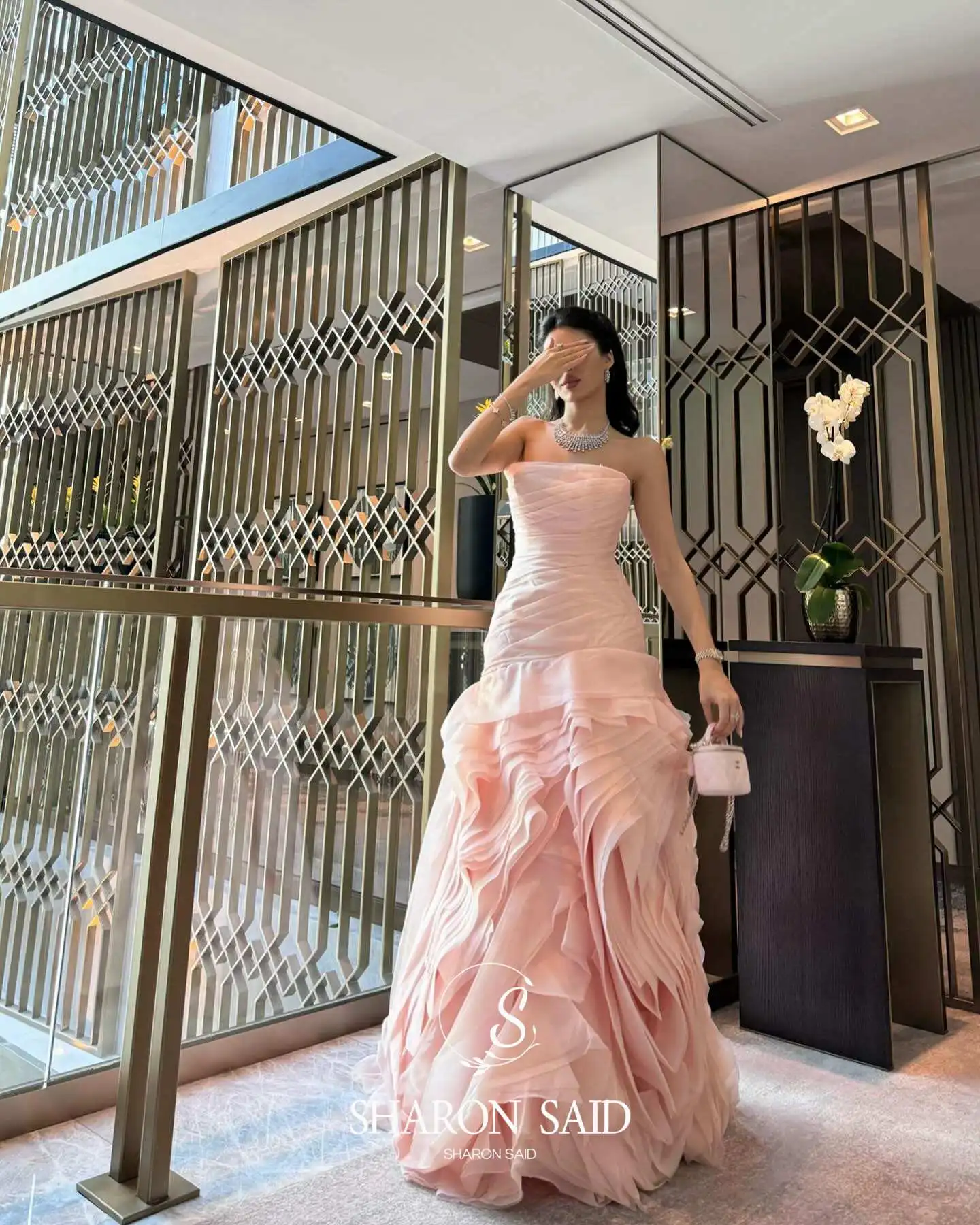 1. Sharon Said Luxury Ruffles Pink Mermaid Evening Dress photo review