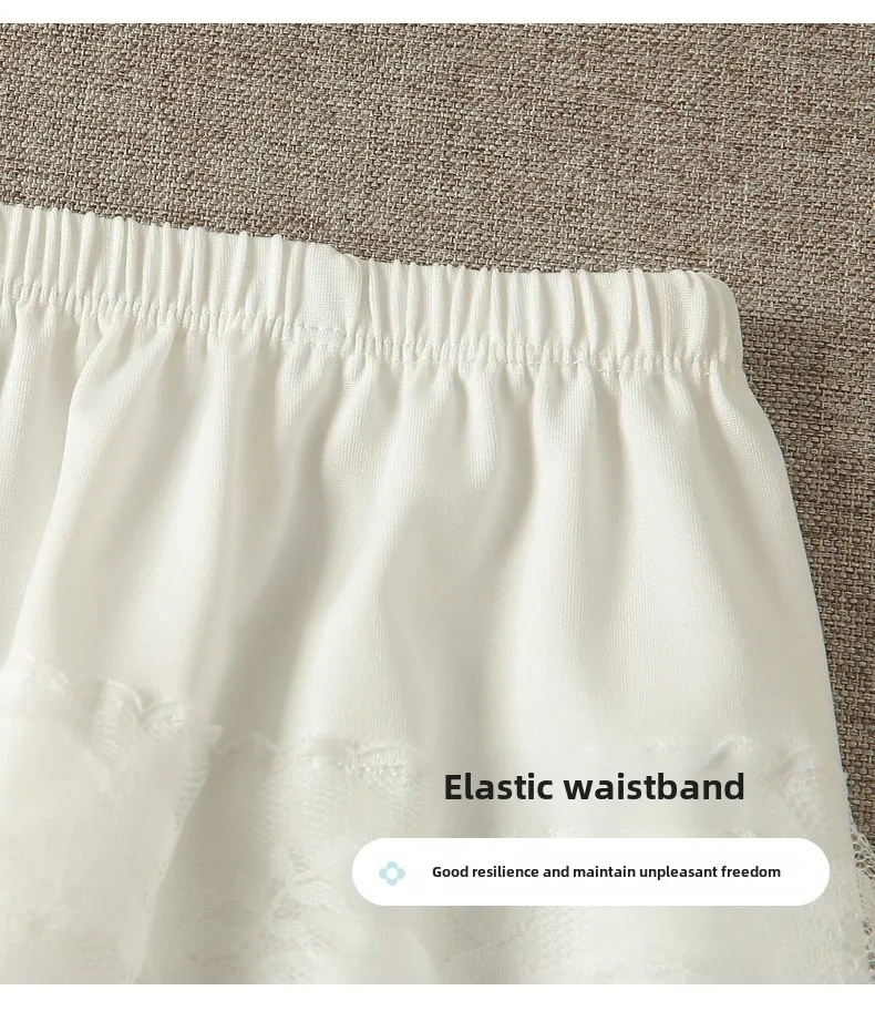 Lightweight, anti-slip safety shorts with lace trim and a wave-cut hem that can be worn under skirts or as outerwear. Soft blended knit with stretch, a comfy elastic mid waist, and a sweet JK-inspired Y2K look for spring and summer.