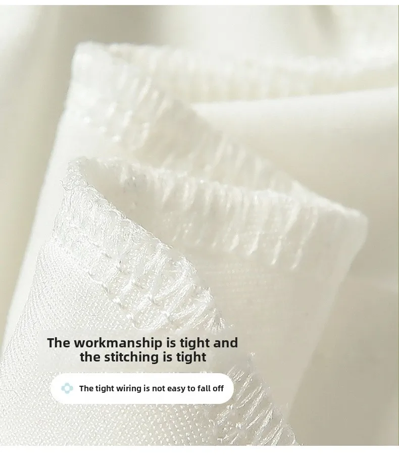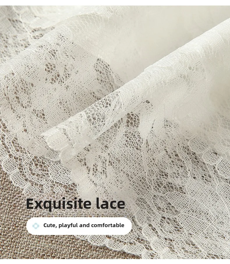 • Decoration: Lace trim, wave-cut hem, soft folds/ruffles