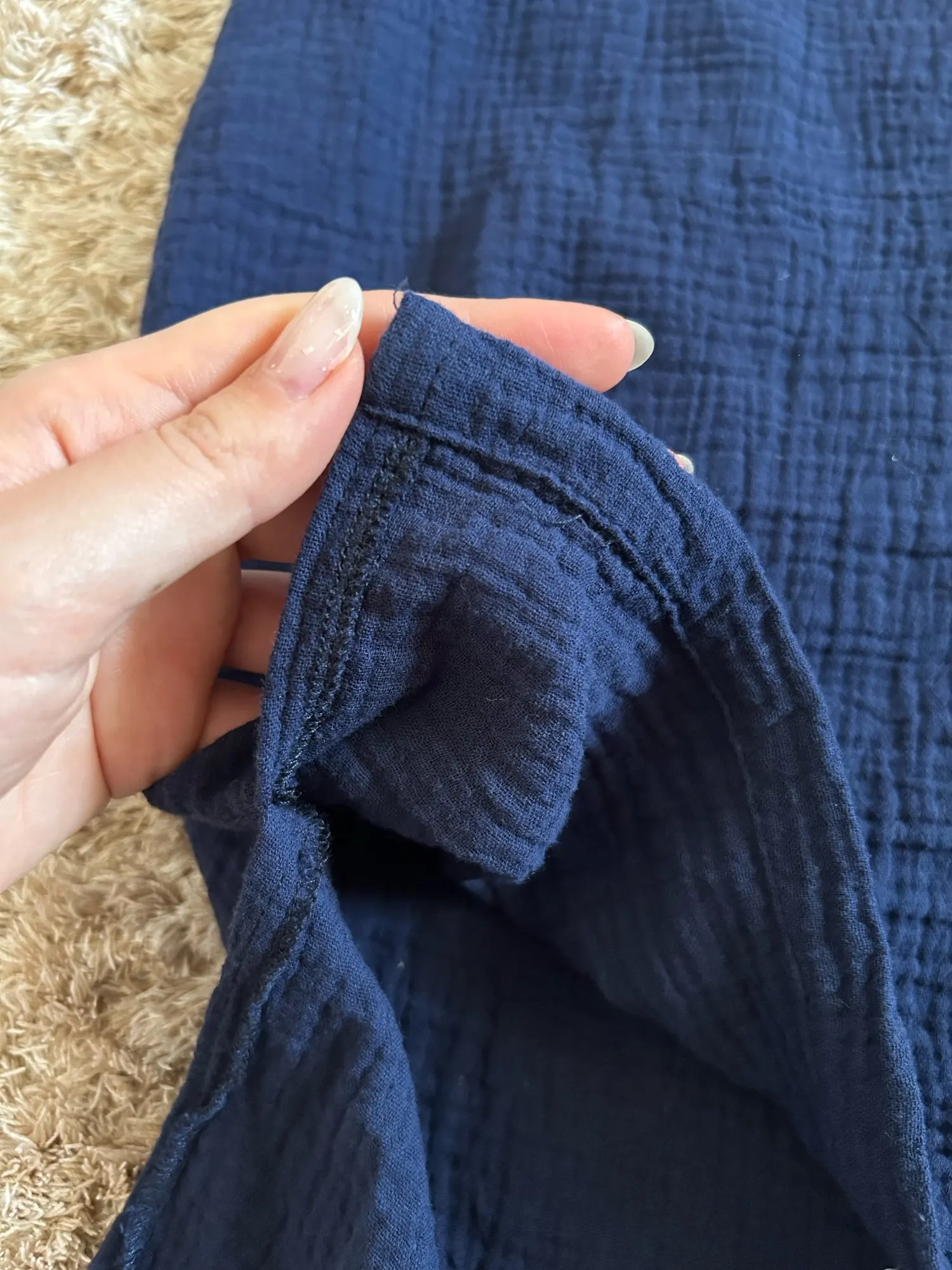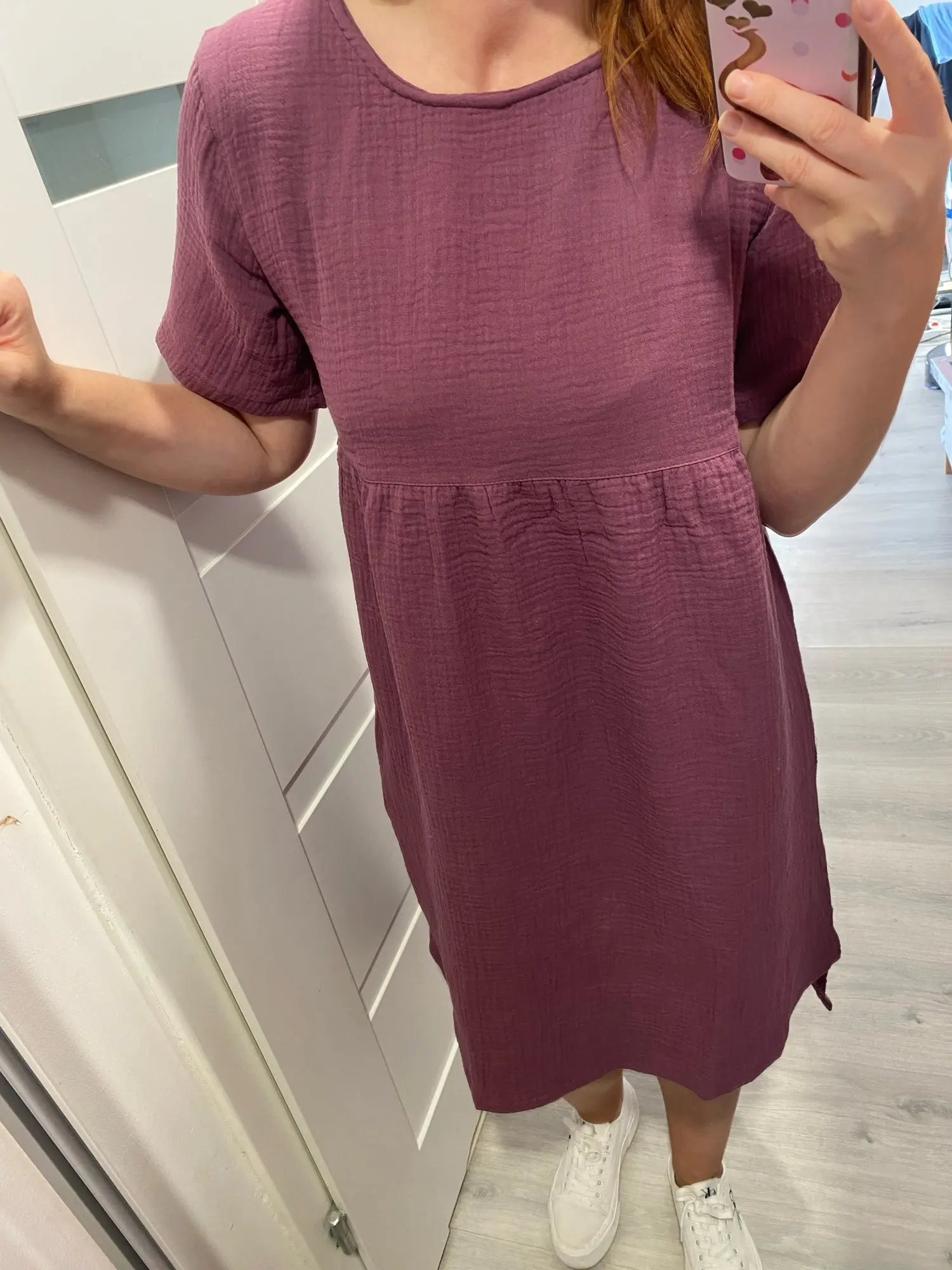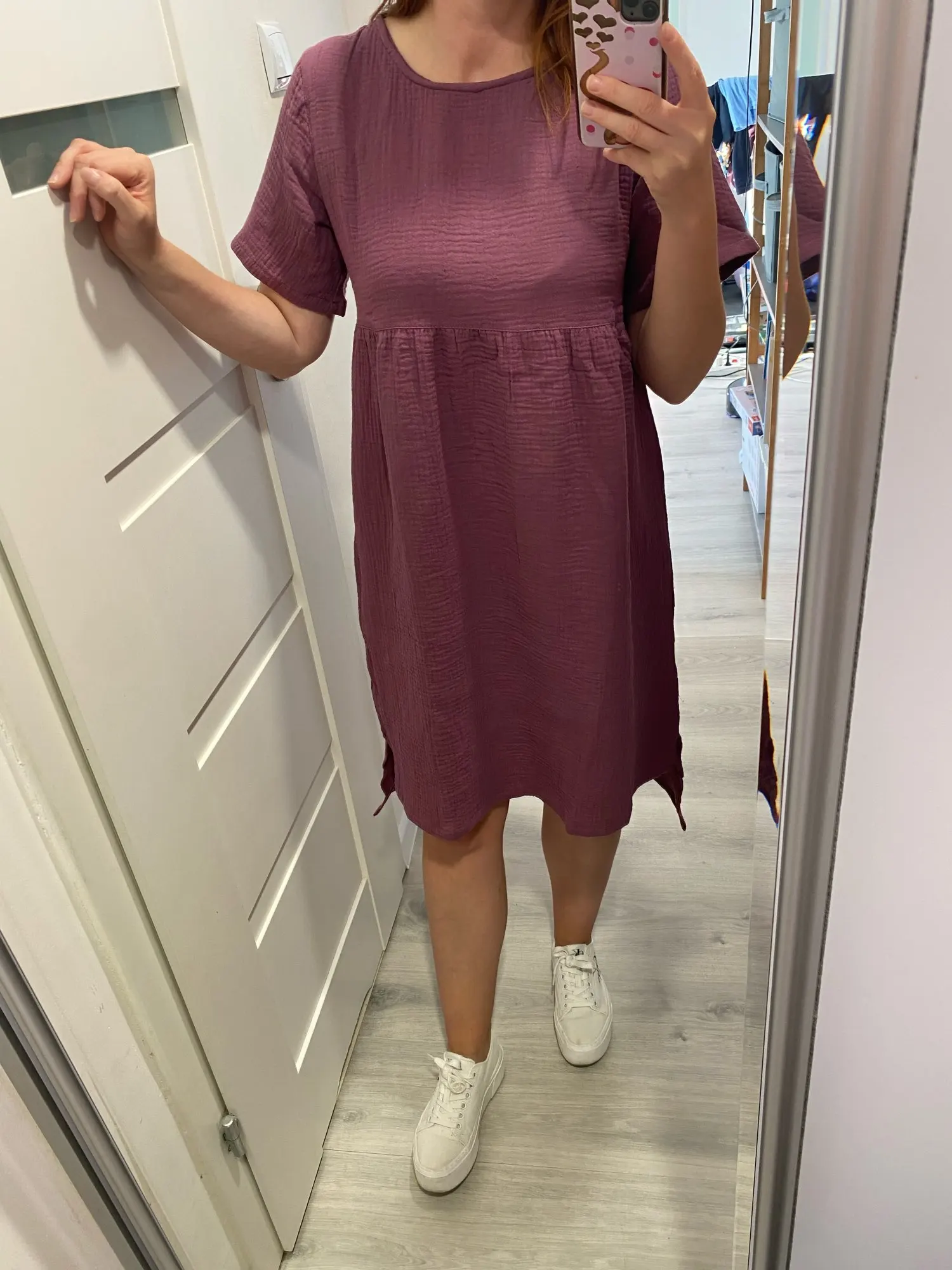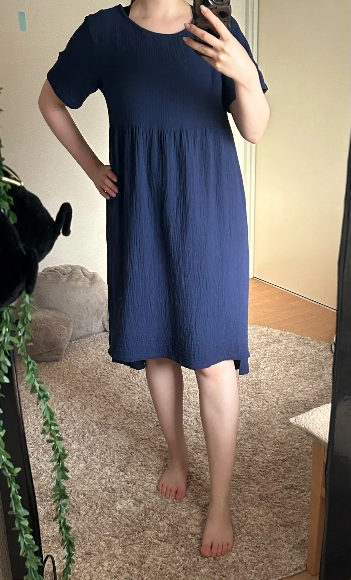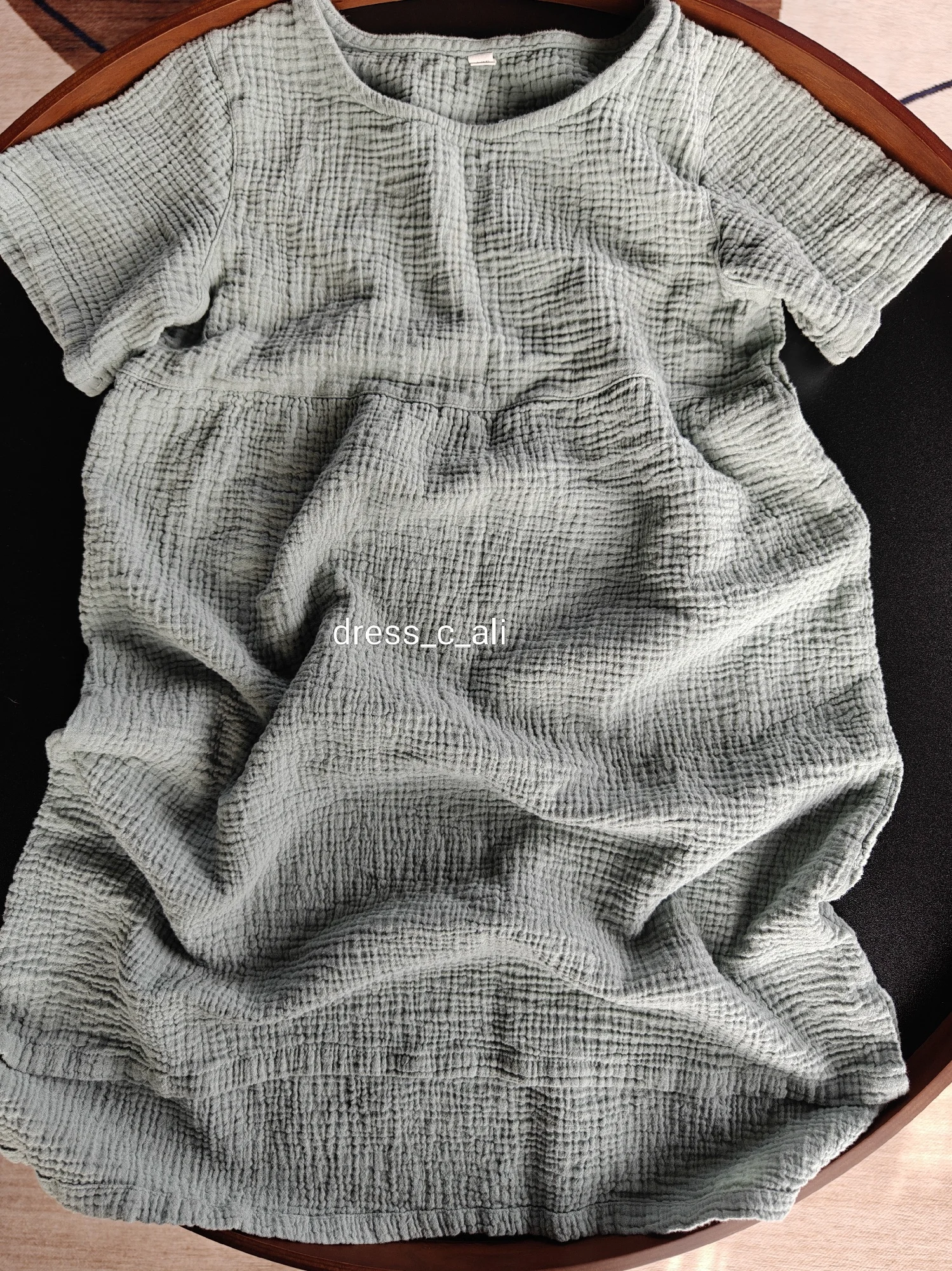 Comfortable and breathable summer nightgown made from 100% cotton gauze fabric. This simple and natural sleepwear features a classic round neckline, short sleeves, and knee-length cut. The lightweight cotton material is skin-friendly, soft, and excellent for absorbing sweat, making it perfect for warm summer nights at home.