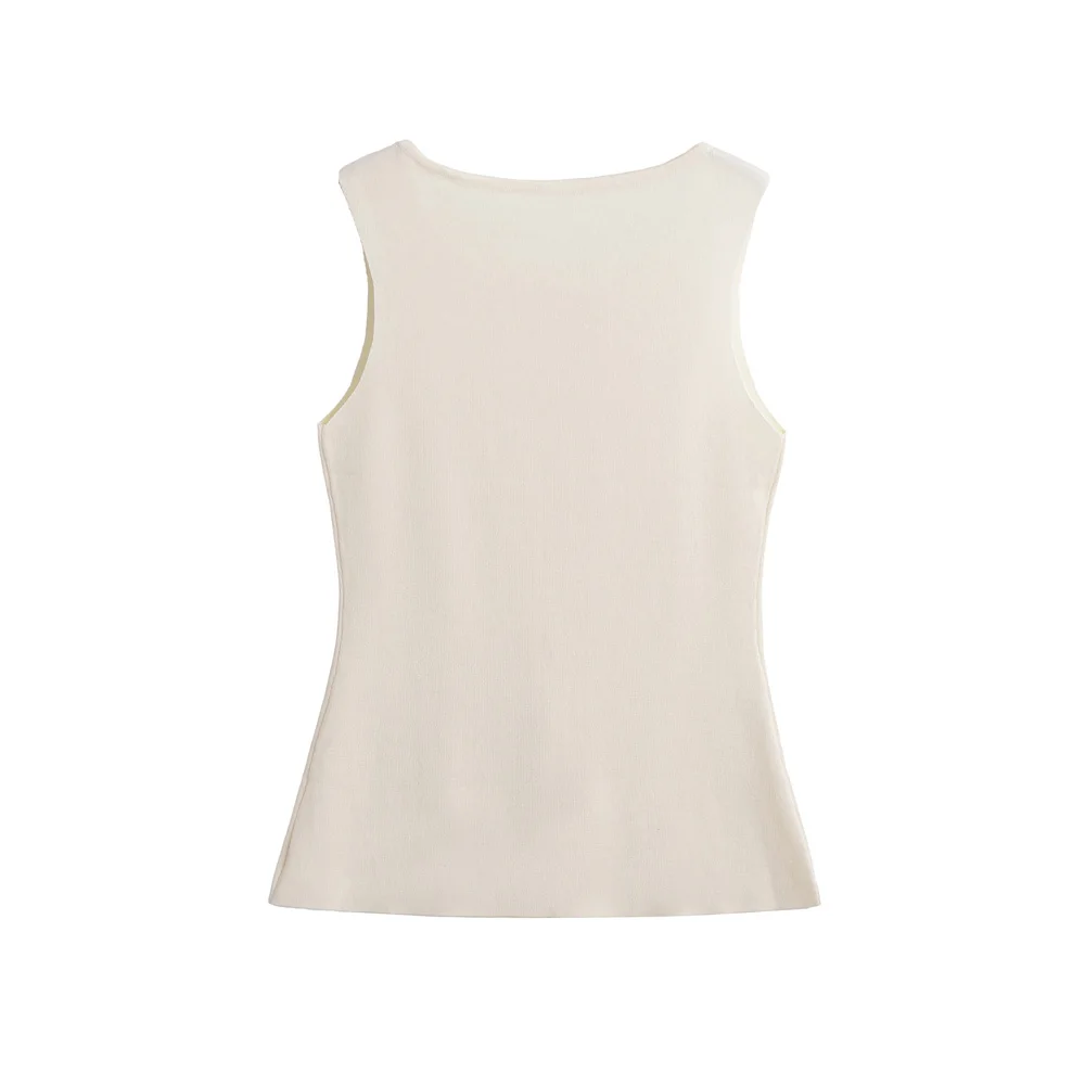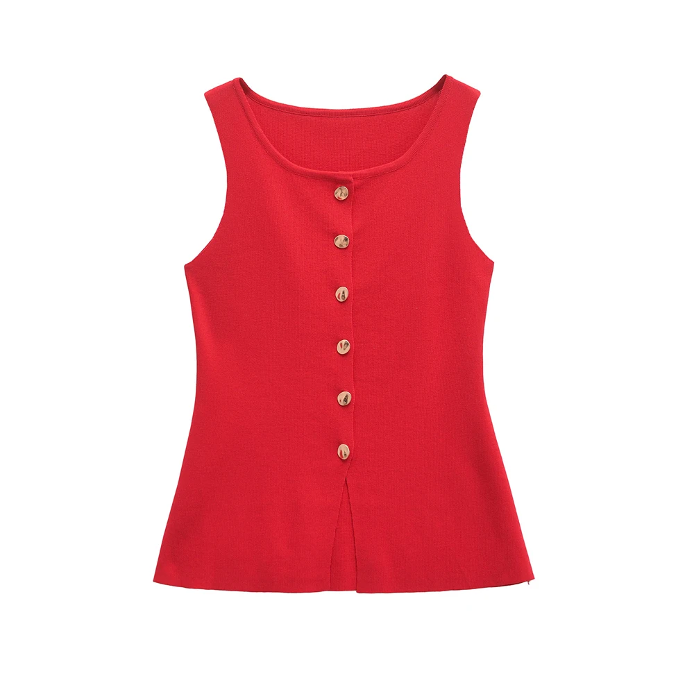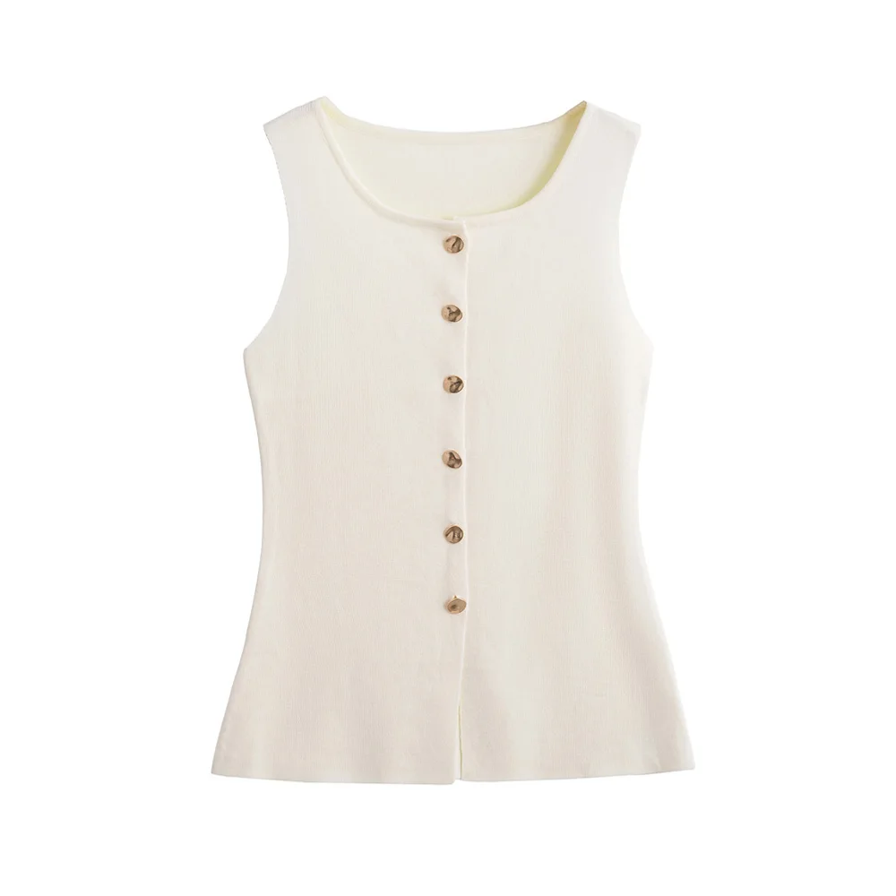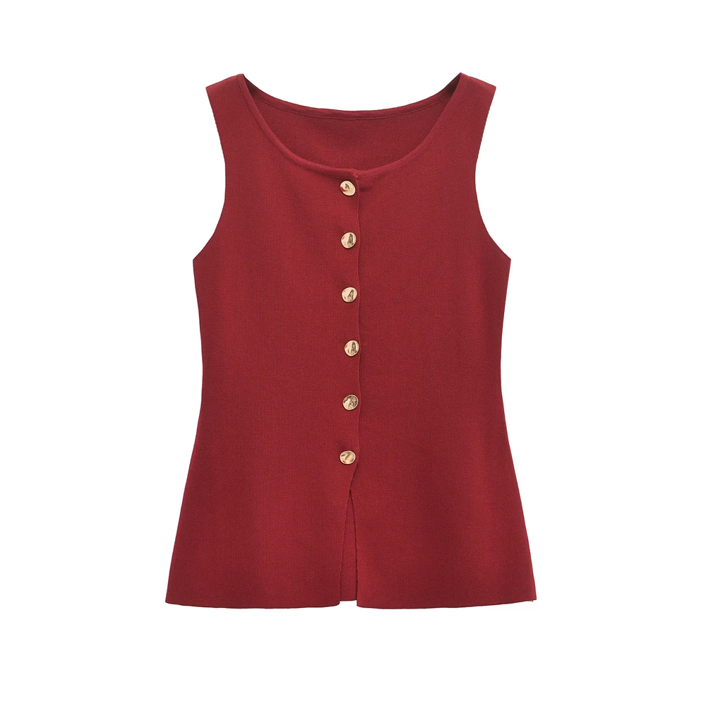 This elegant sleeveless knitted vest features stylish golden button detailing for a sophisticated layering piece. Perfect for all-season wear, this lightweight O-neck waistcoat adds a chic touch to any outfit while providing versatile styling options for both casual and professional looks.