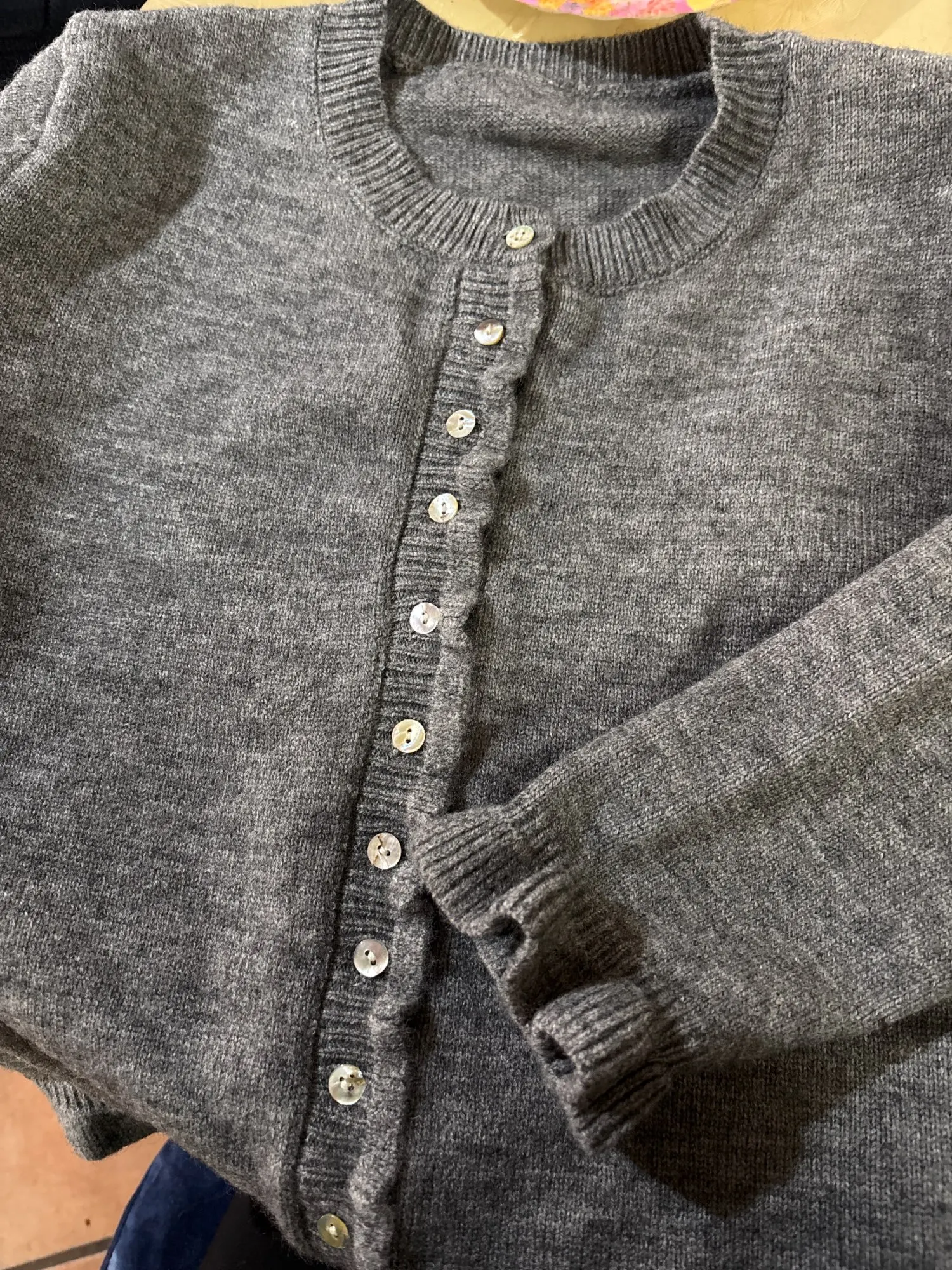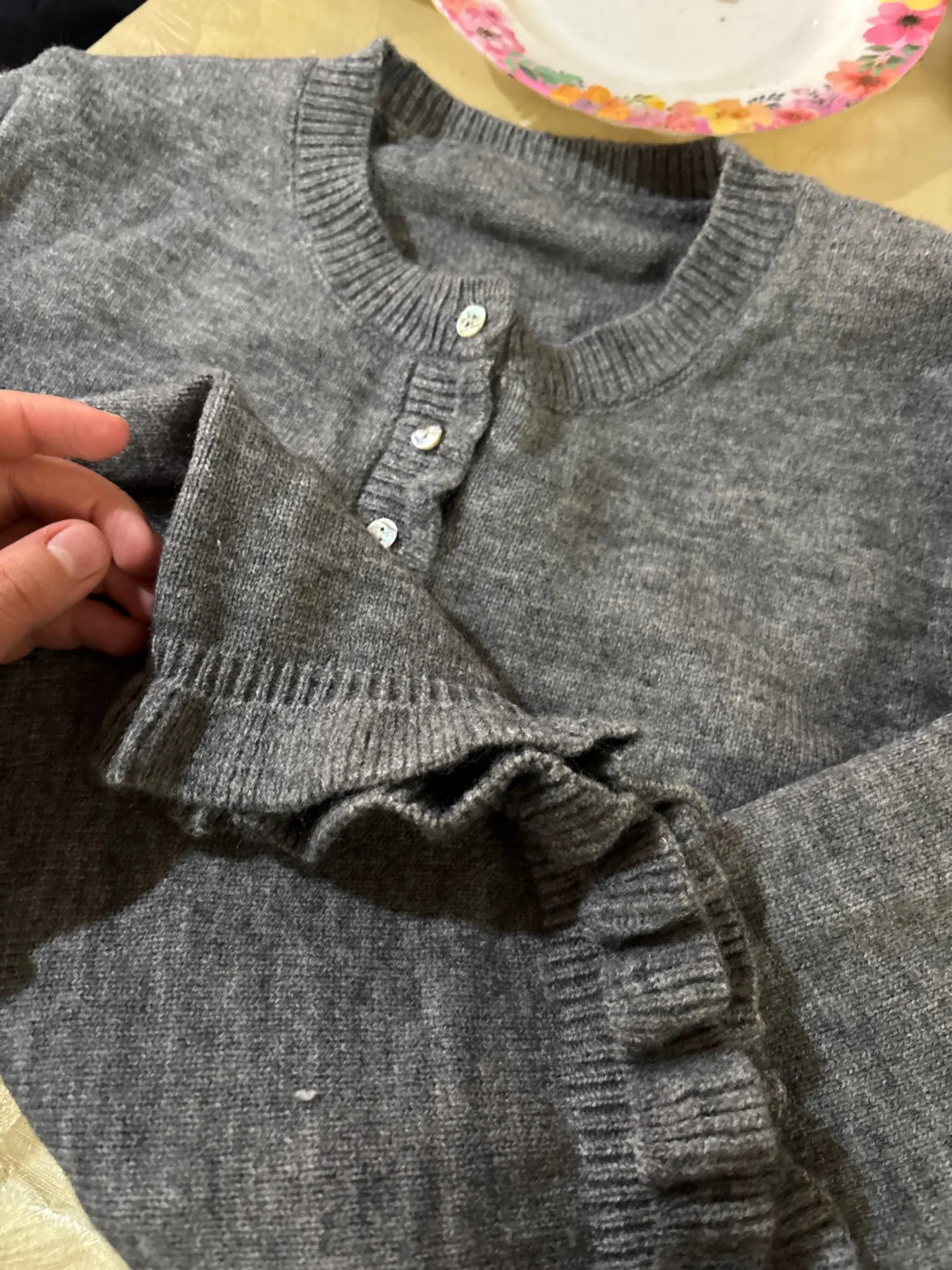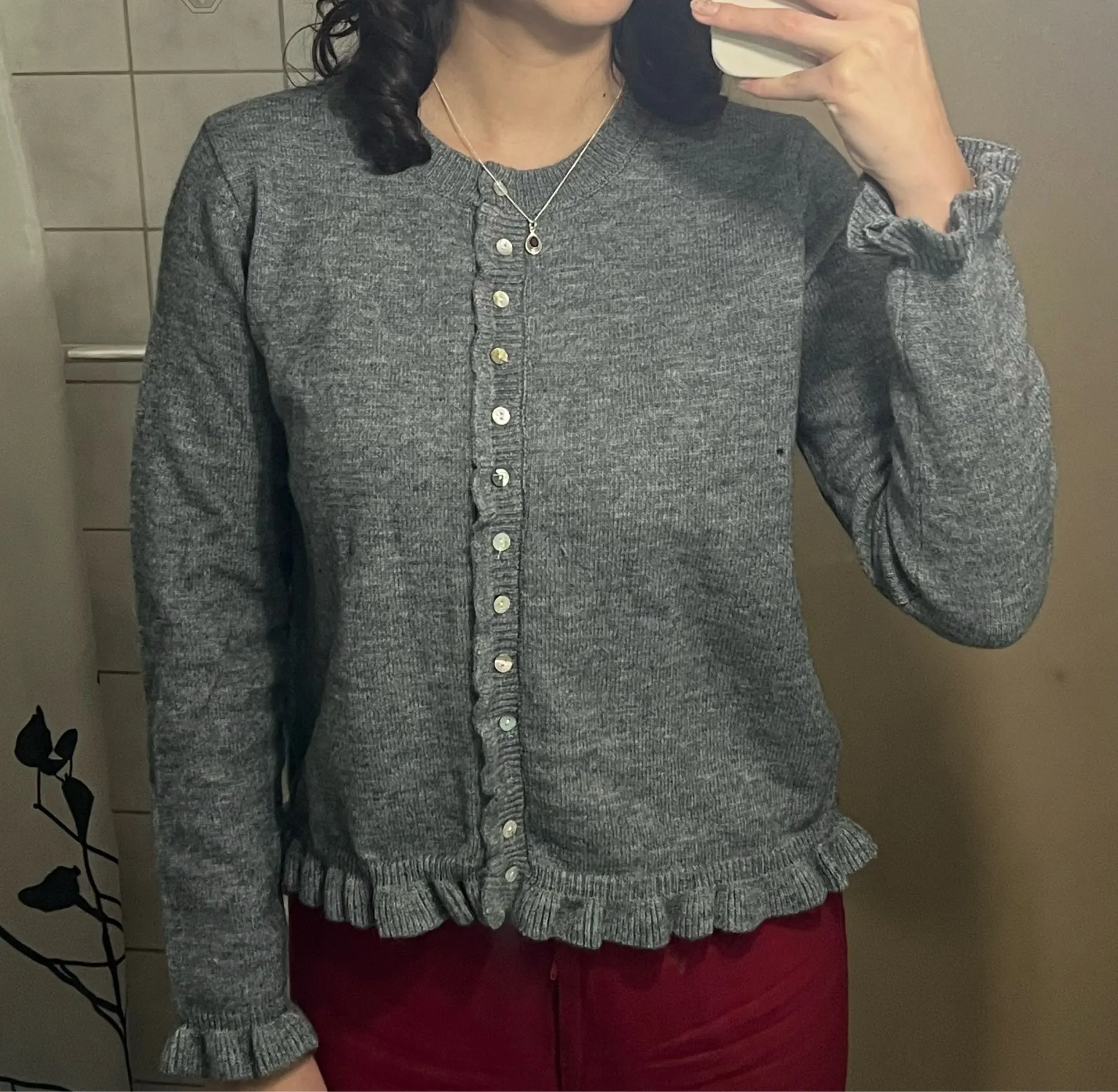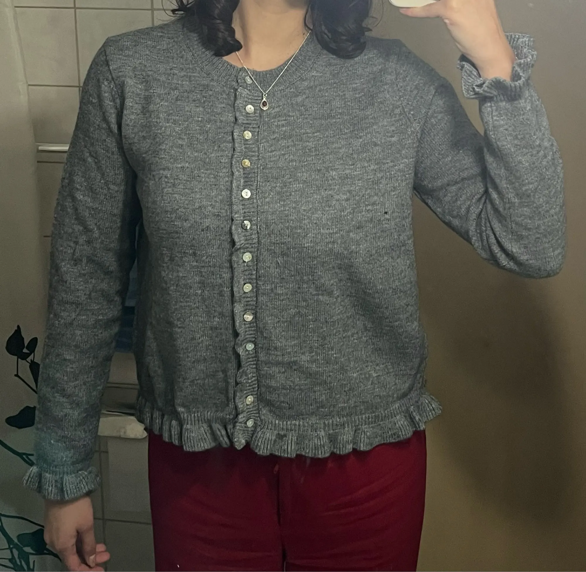 Women's Ruffled Knit Cardigan with Front Buttons photo review