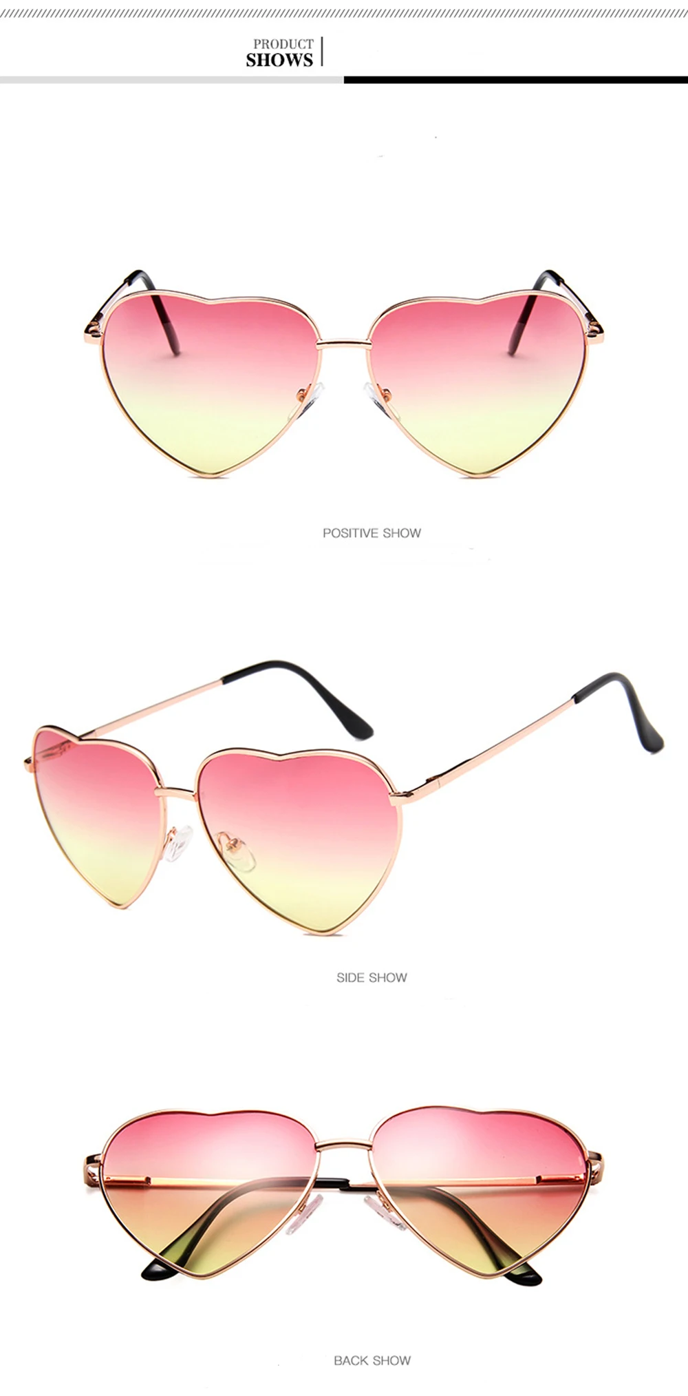3 reviews for Vintage Heart Sunglasses Women Candy Gradient