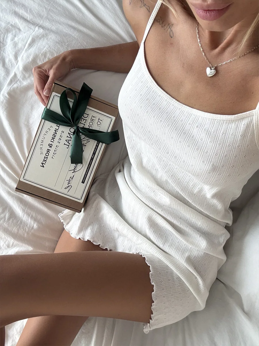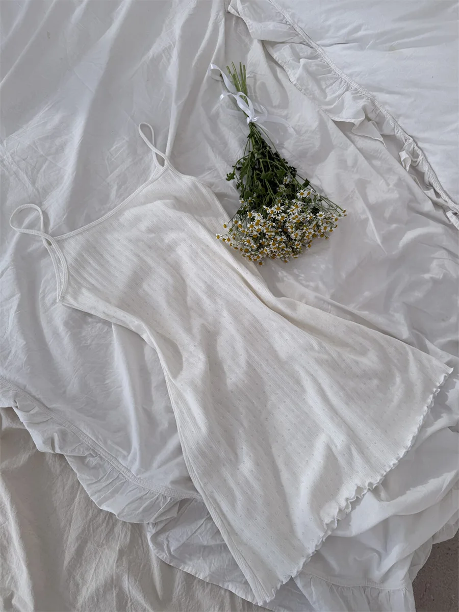 Discover pure elegance with this stunning white jacquard nightgown. The intricate hollow knit pattern creates beautiful texture while maintaining breathable comfort for summer nights.