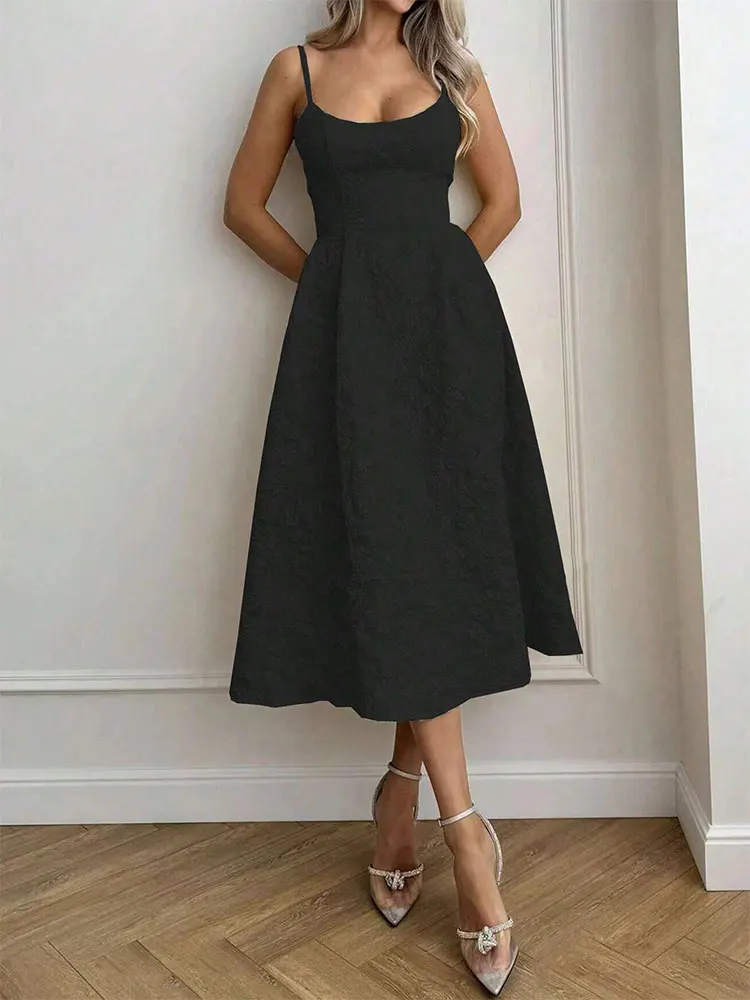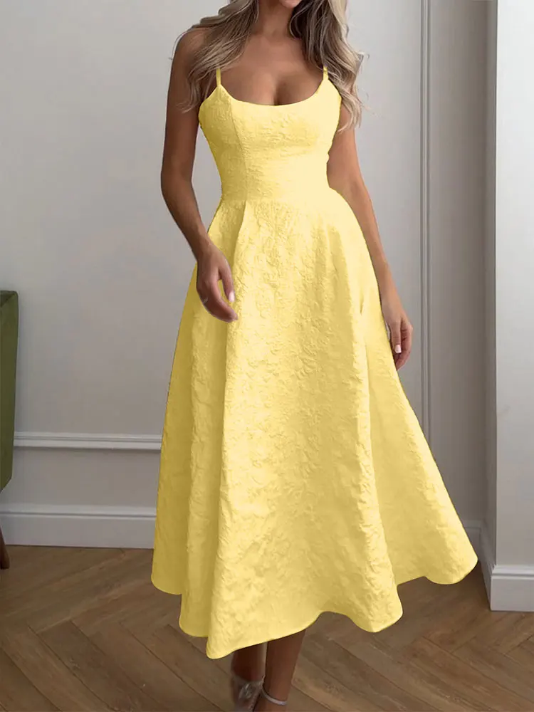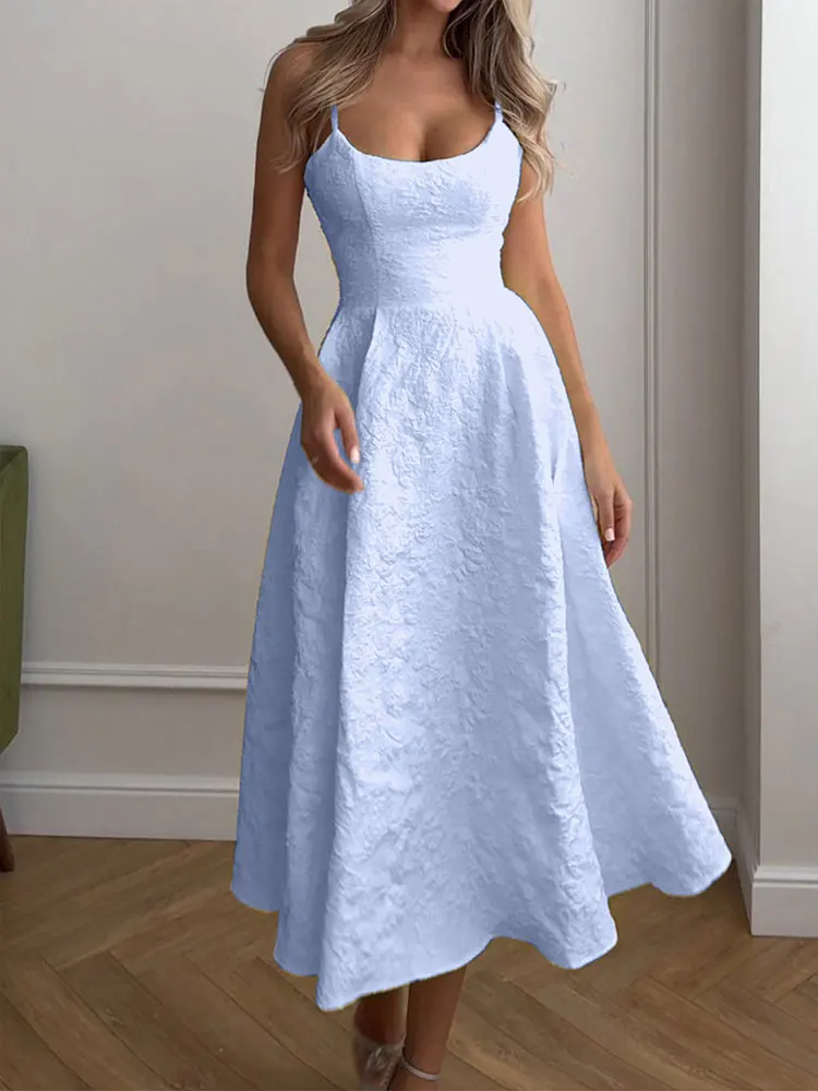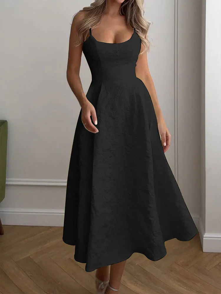 Stunning new summer A-line maxi dress featuring a sexy backless design with elegant O-neckline and low chest sling construction. This solid-colored dress combines streetwear edge with casual sophistication, designed with a slim-fitting silhouette that flatters the feminine figure. Perfect for the fashion-forward woman seeking comfortable yet stylish summer wear with contemporary appeal and versatile styling options.