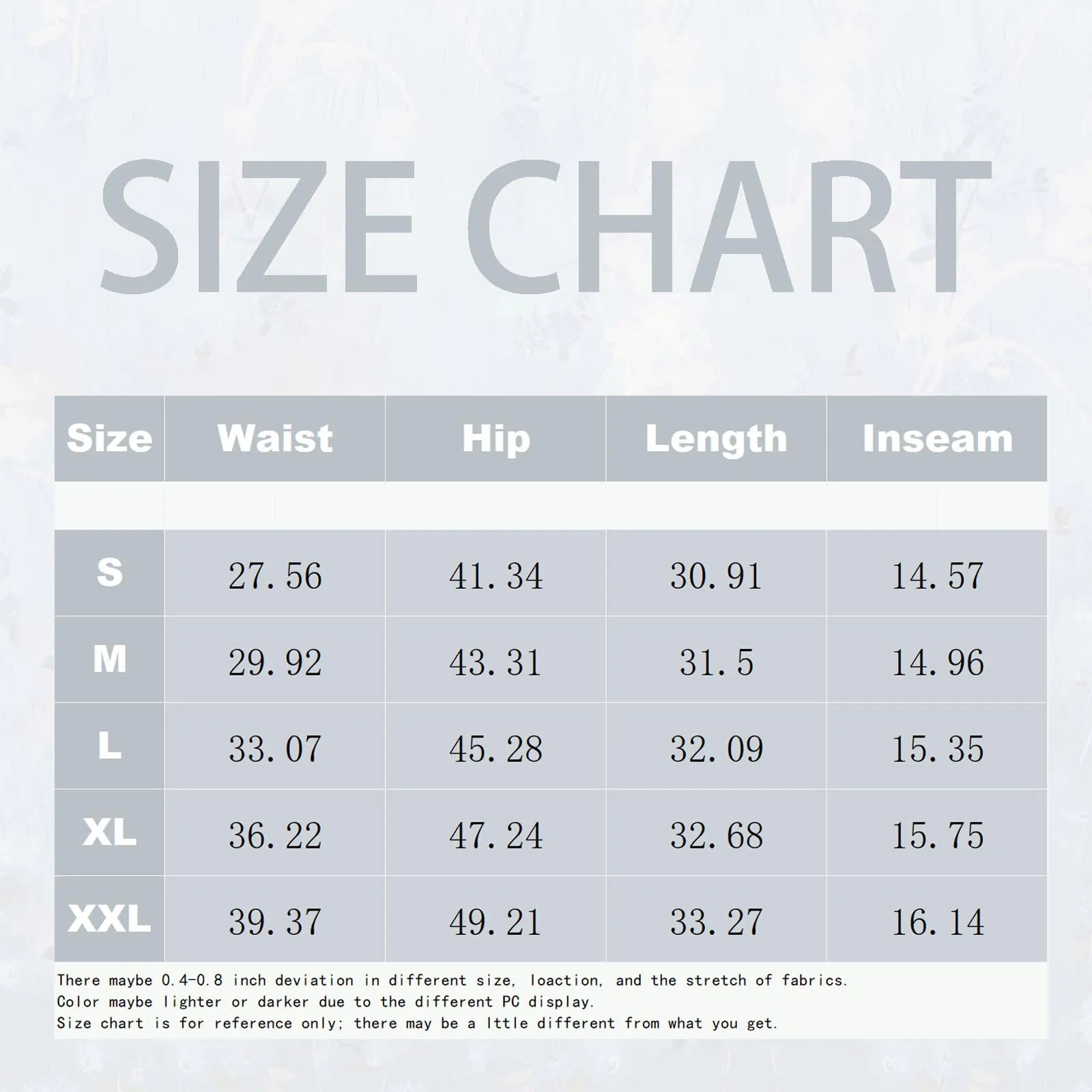 | Size | Waist | Hip | Length |