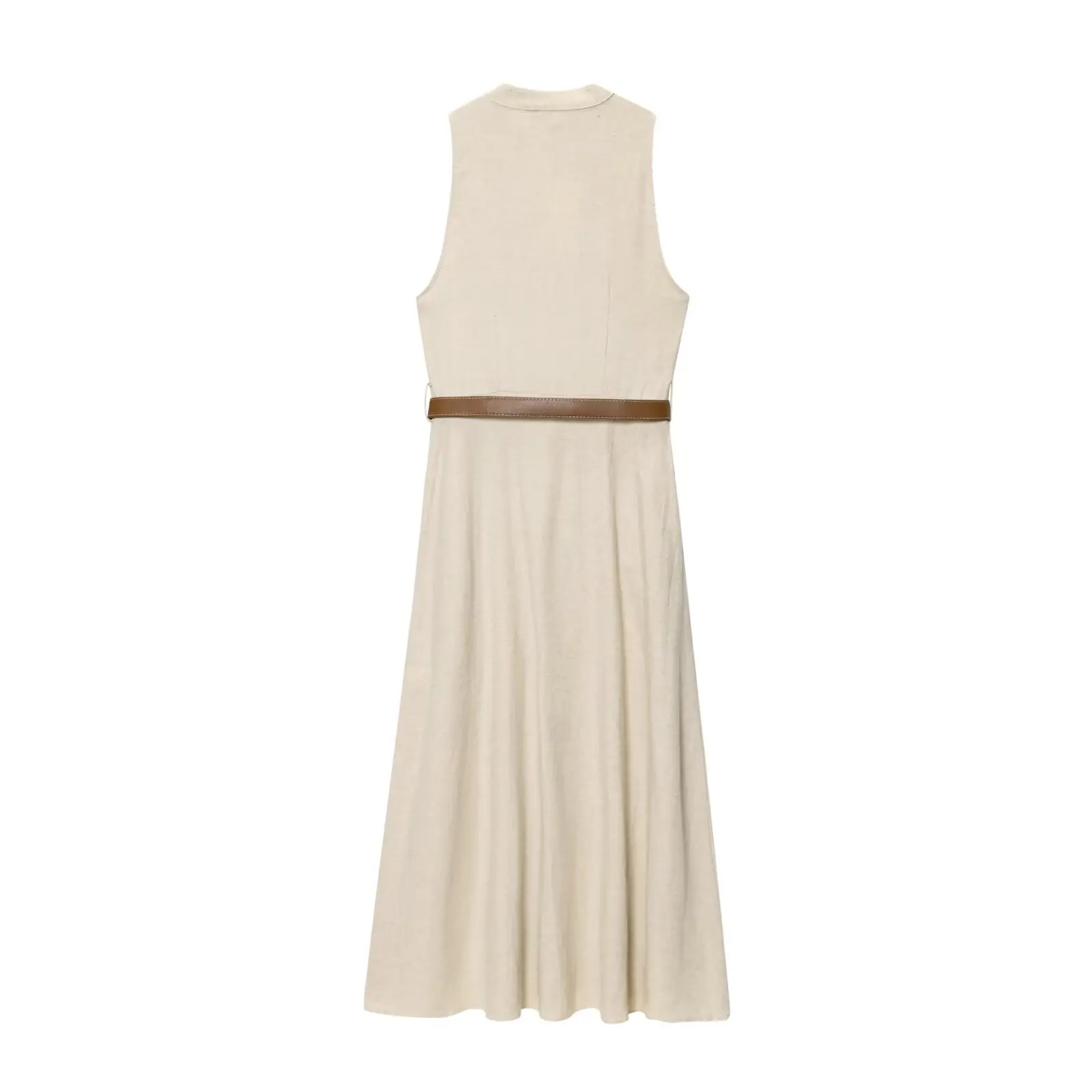 Crafted from high-quality polyester fabric, this sleeveless design offers comfort and durability throughout all seasons. The mid-calf length provides sophisticated coverage while maintaining a modern, stylish appeal that’s perfect for middle-aged women who appreciate classic fashion with contemporary touches.