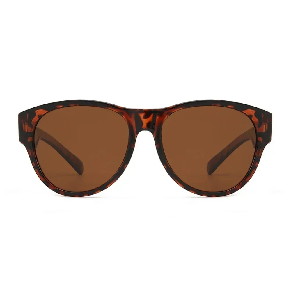 Available in four stunning color combinations including classic tortoiseshell and sleek black frames with matching lens options, plus polarized variants for enhanced visual clarity. The generous 148x145mm dimensions provide excellent coverage while the fit-over design accommodates most prescription glasses comfortably.