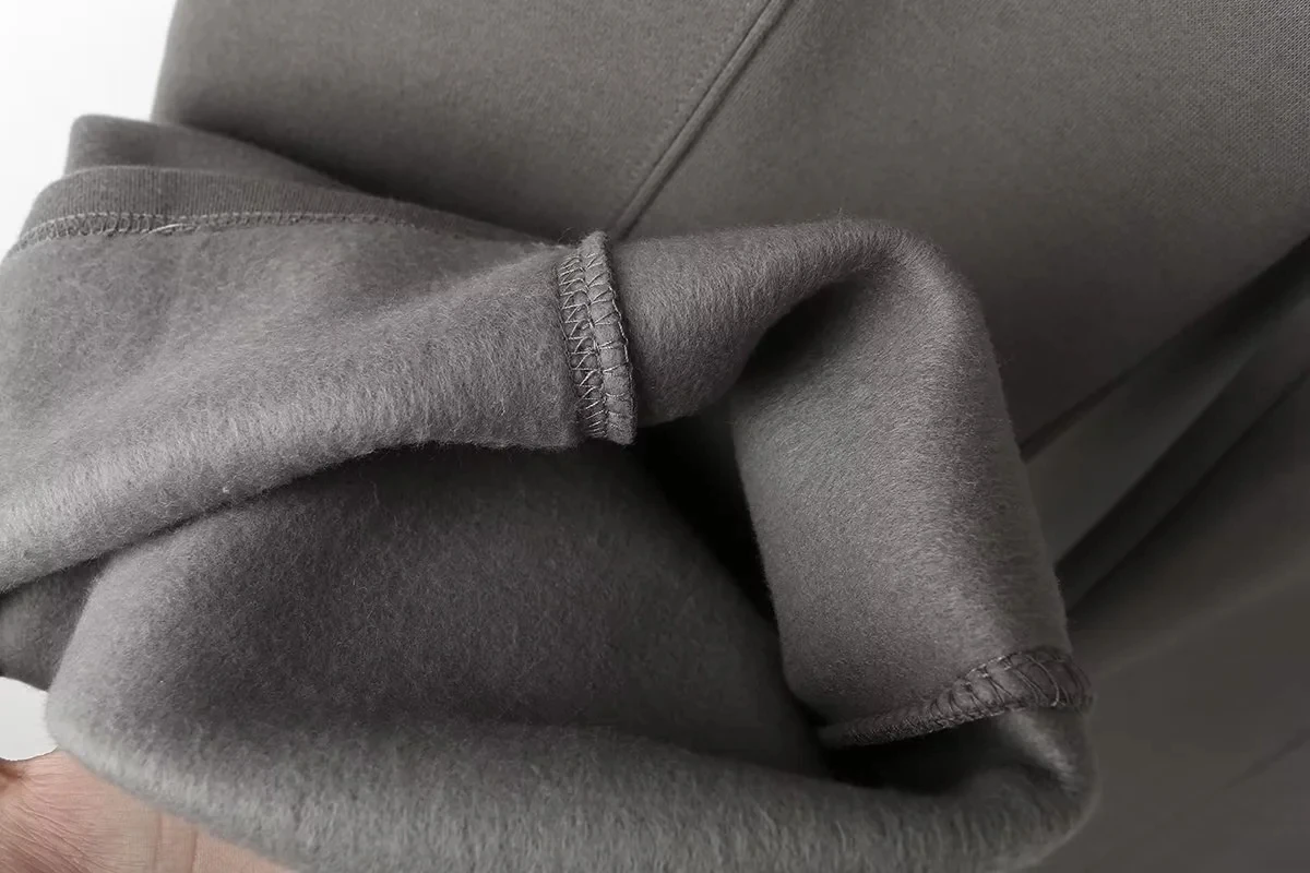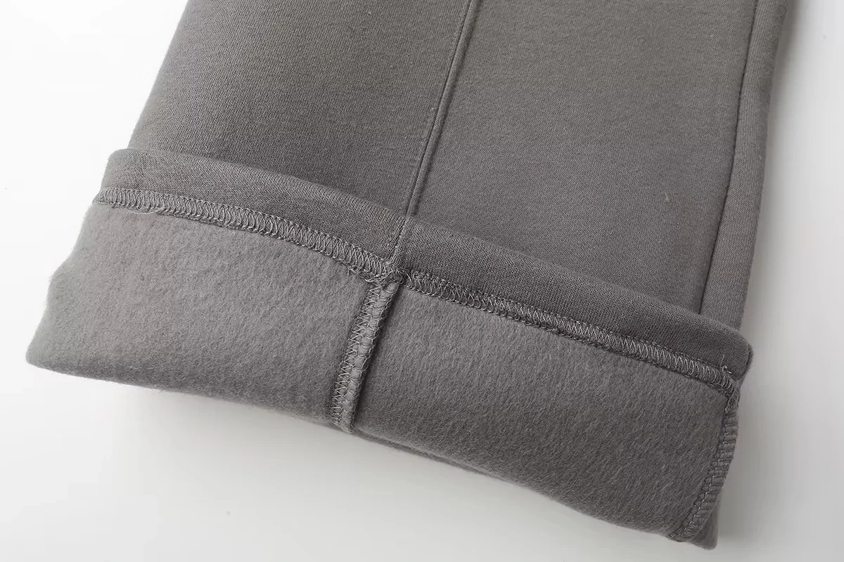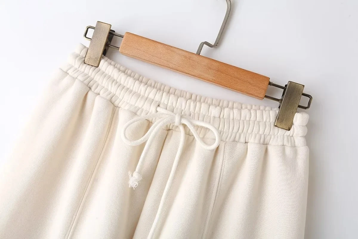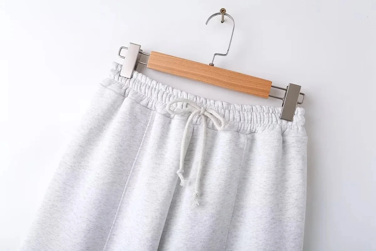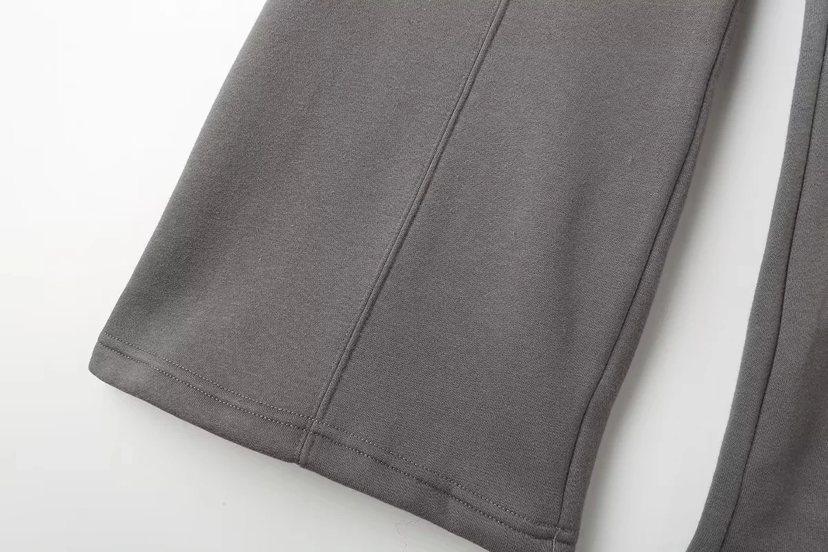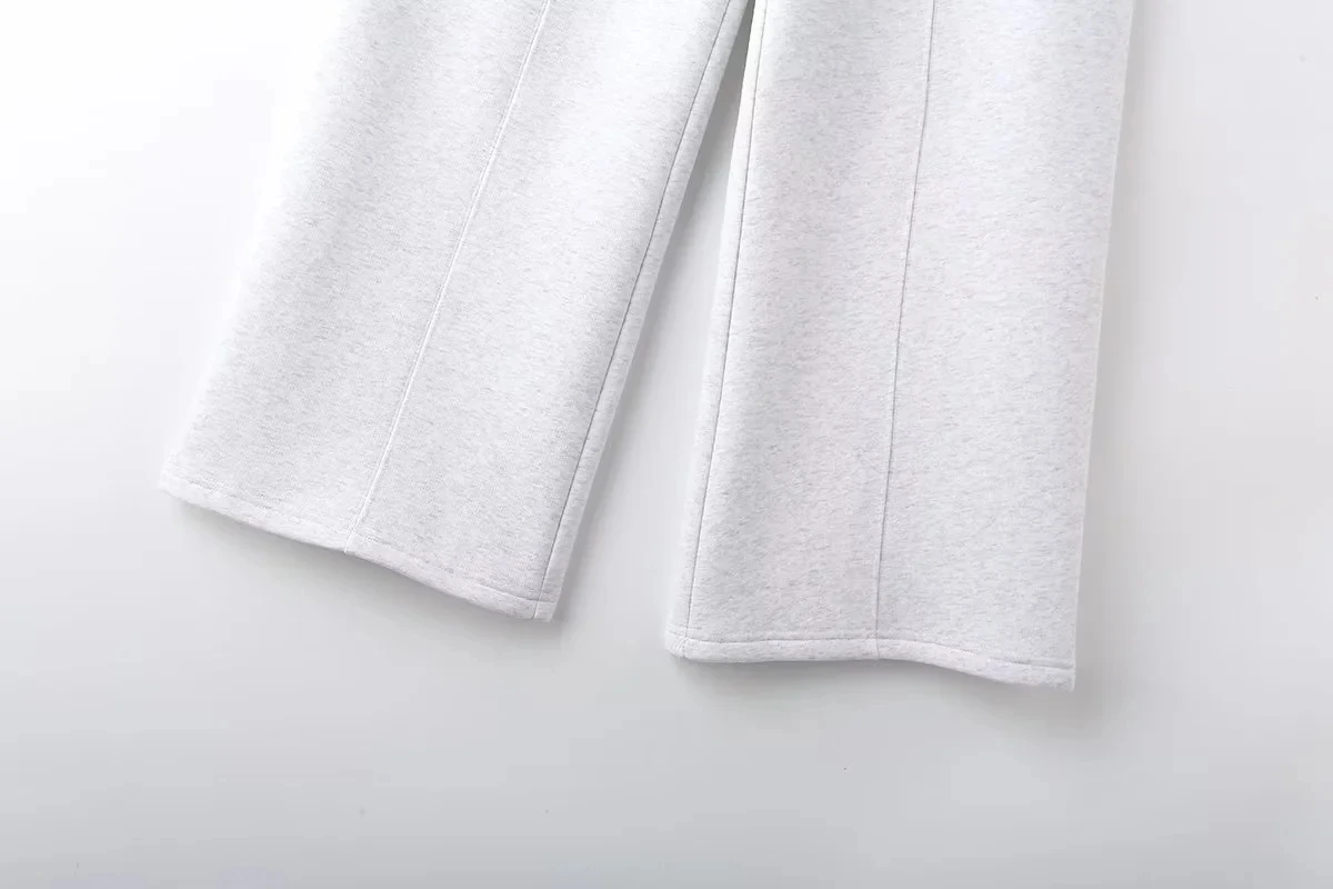 A versatile high street fashion set featuring a zipper bomber sweatshirt paired with elastic high waist plush trousers. This blended polyester set offers regular fit styling suitable for all seasons. The coordinated solid color design with zip details provides both comfort and contemporary street style appeal for everyday wear.
