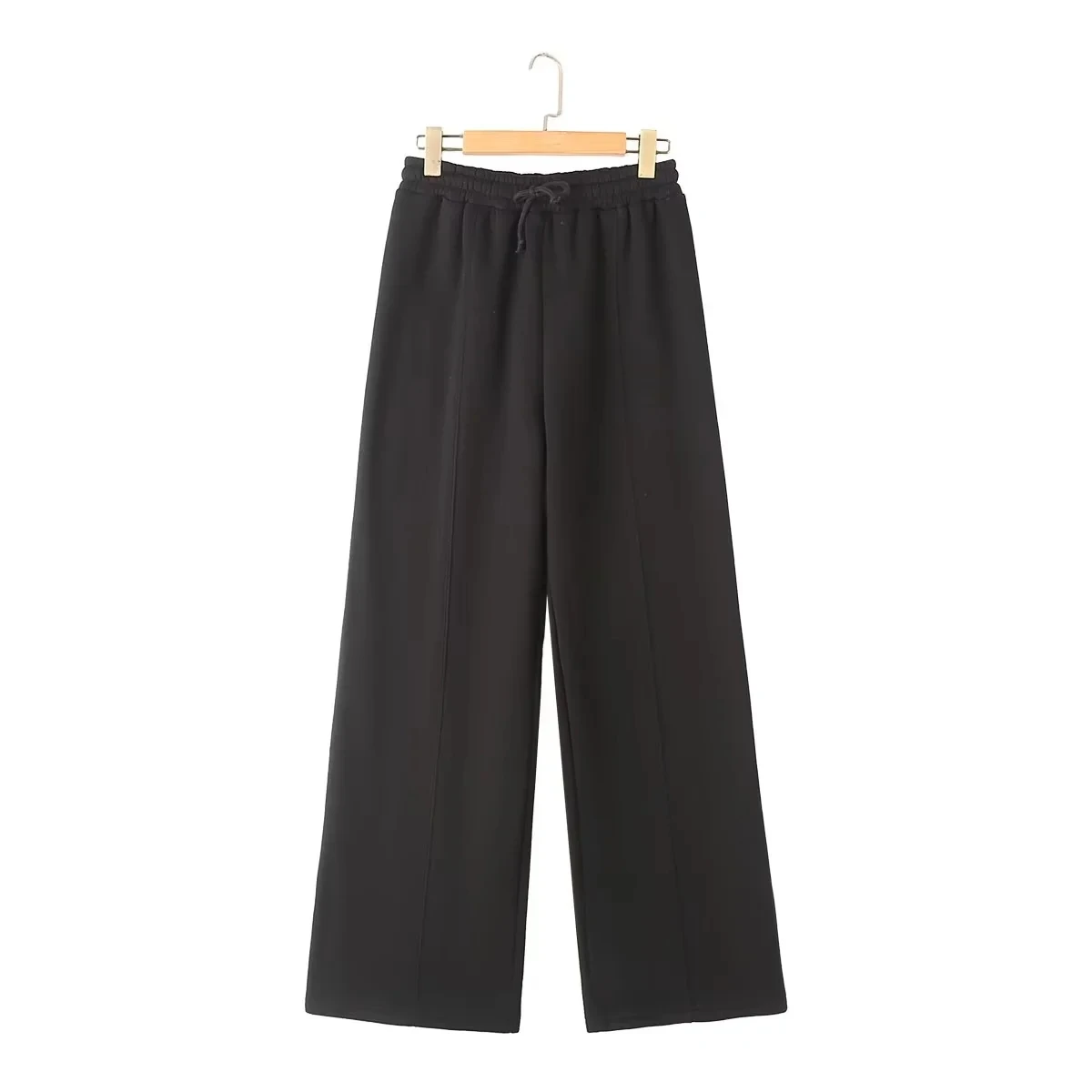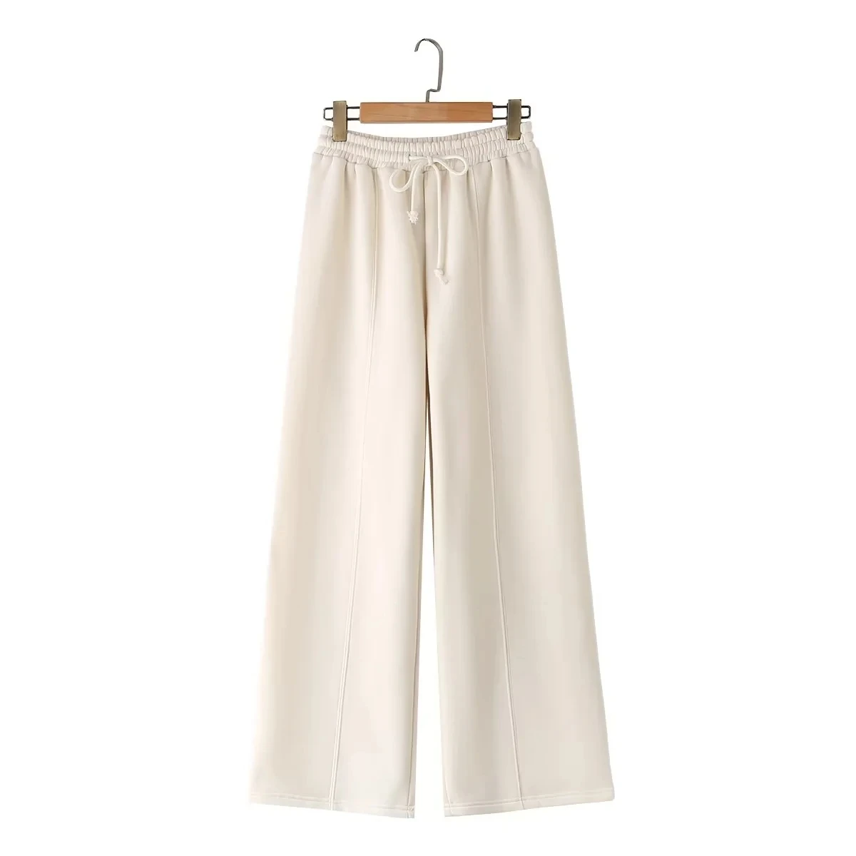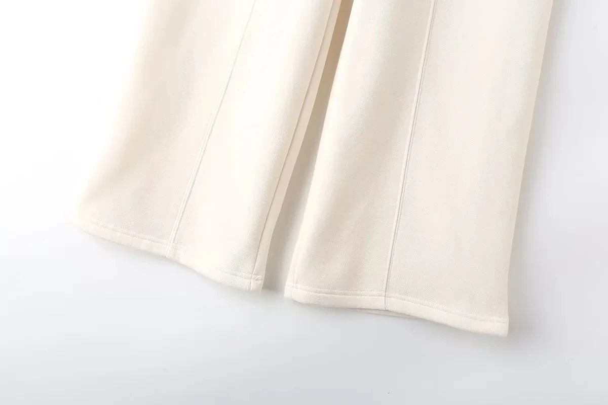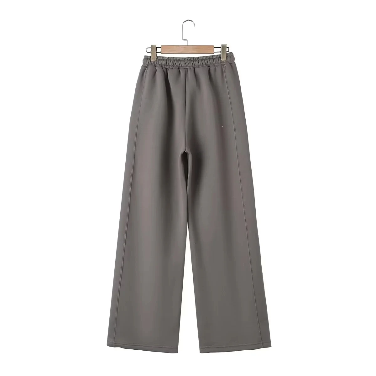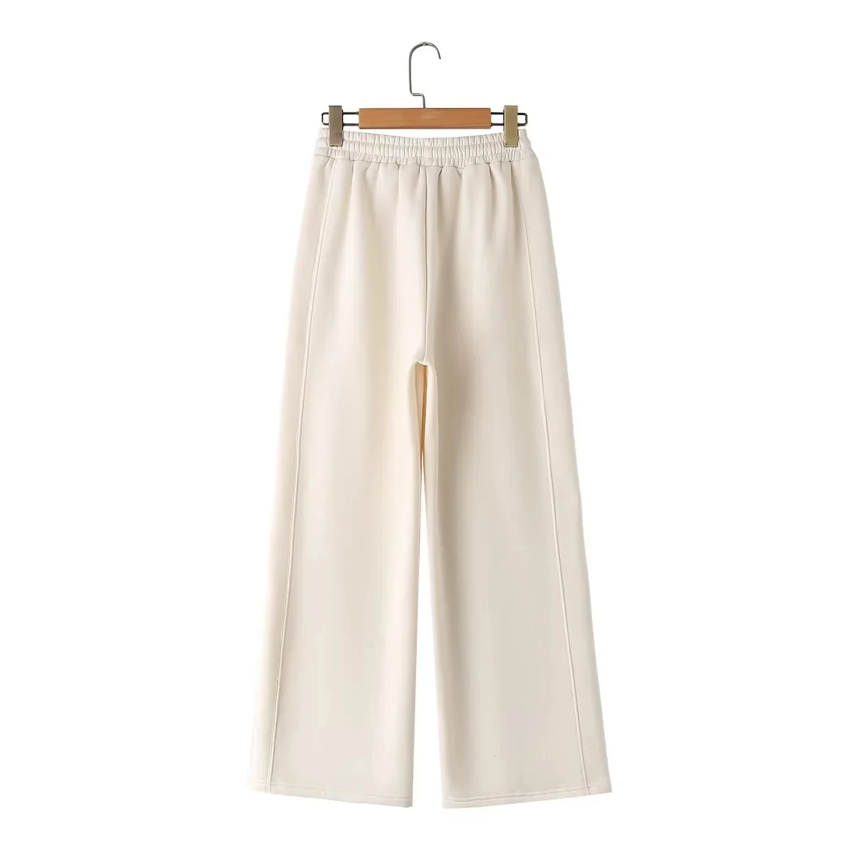 A versatile high street fashion set featuring a zipper bomber sweatshirt paired with elastic high waist plush trousers. This blended polyester set offers regular fit styling suitable for all seasons. The coordinated solid color design with zip details provides both comfort and contemporary street style appeal for everyday wear.